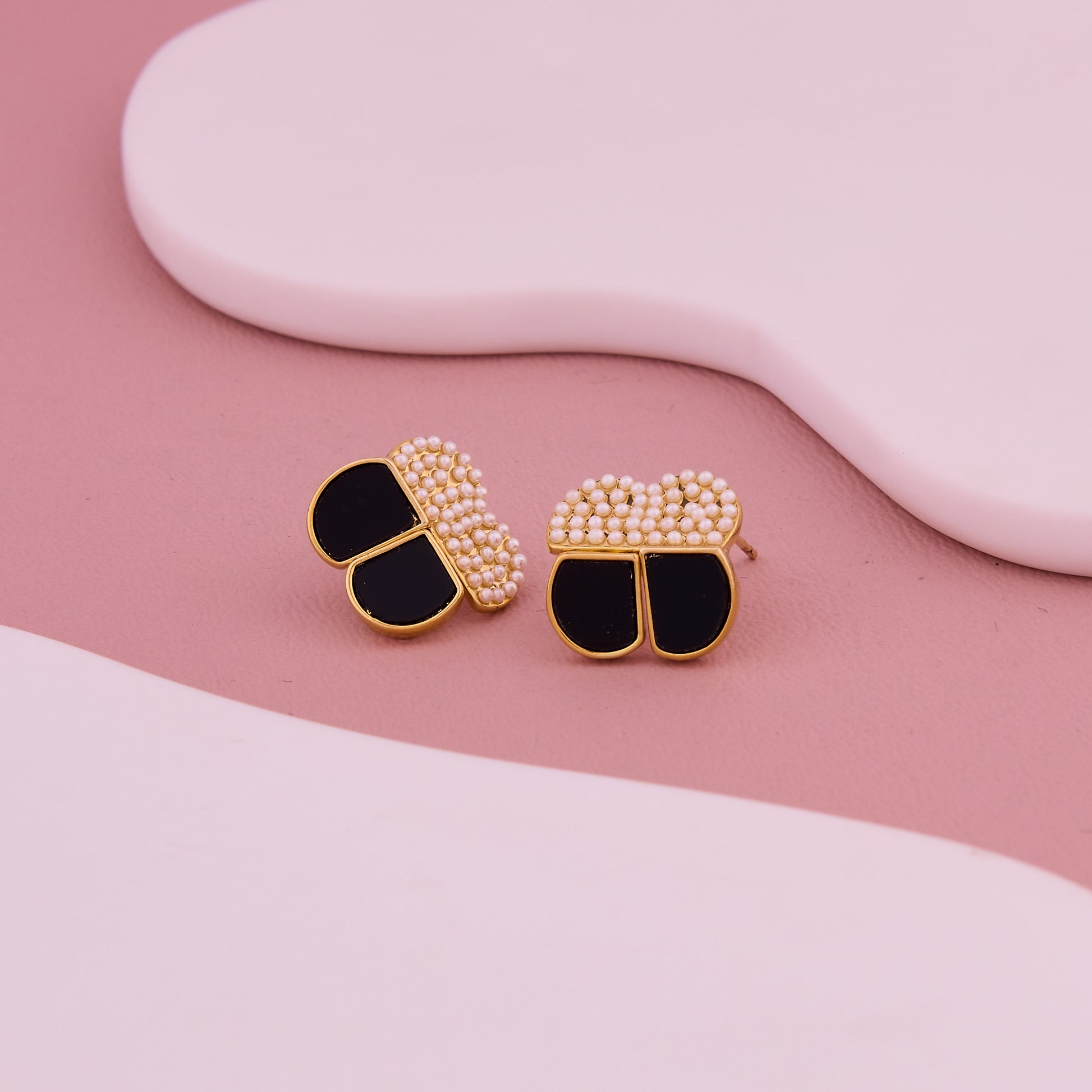 Black Enamel & Pearl Cluster Petal Stud Earrings