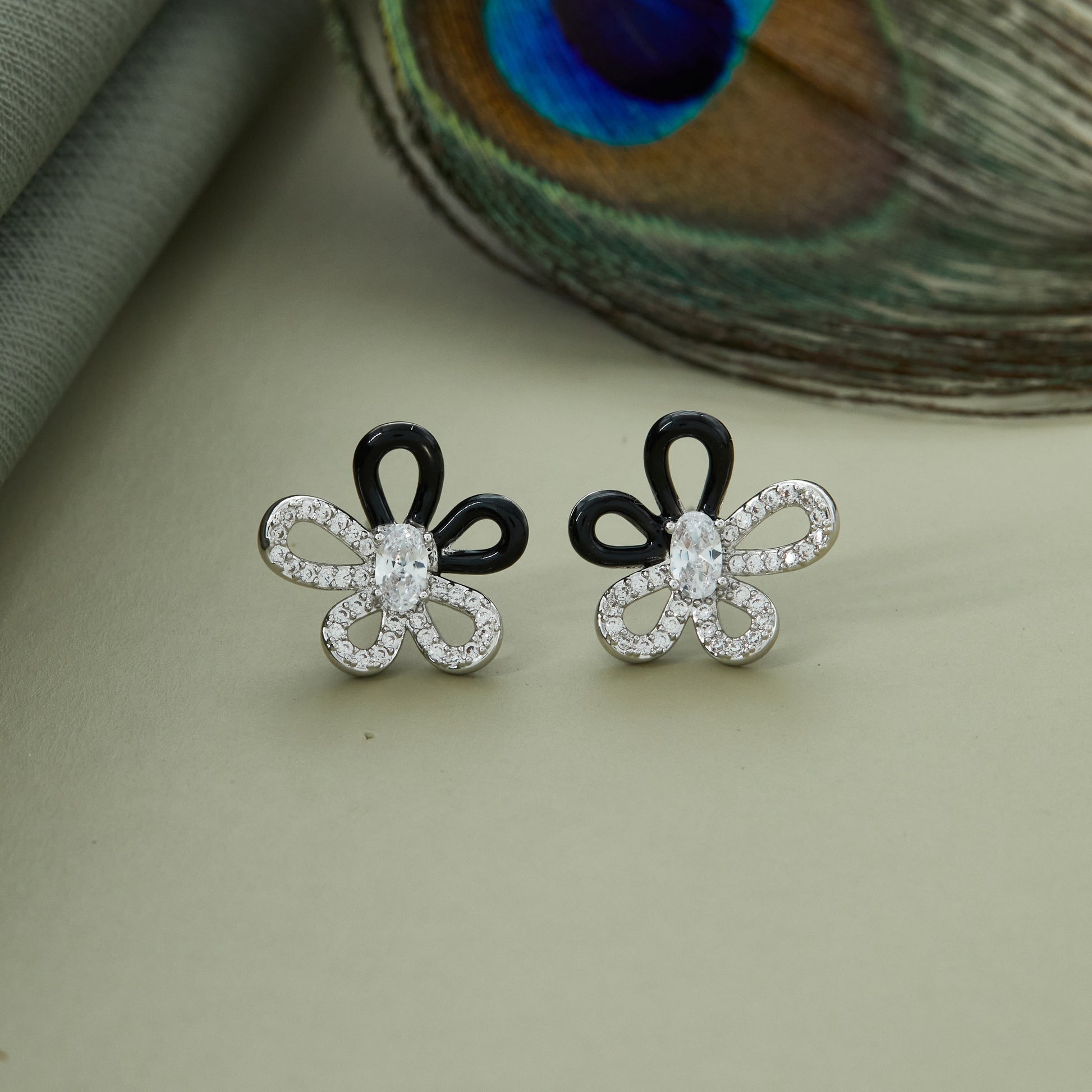 These charming earrings feature an elegant butterfly design with black enamel wings and sparkling crystal accents. The graceful combination of glossy black and shimmering stones makes them a stylish and versatile accessory. Perfect for adding a whimsical yet sophisticated touch to any outfit.