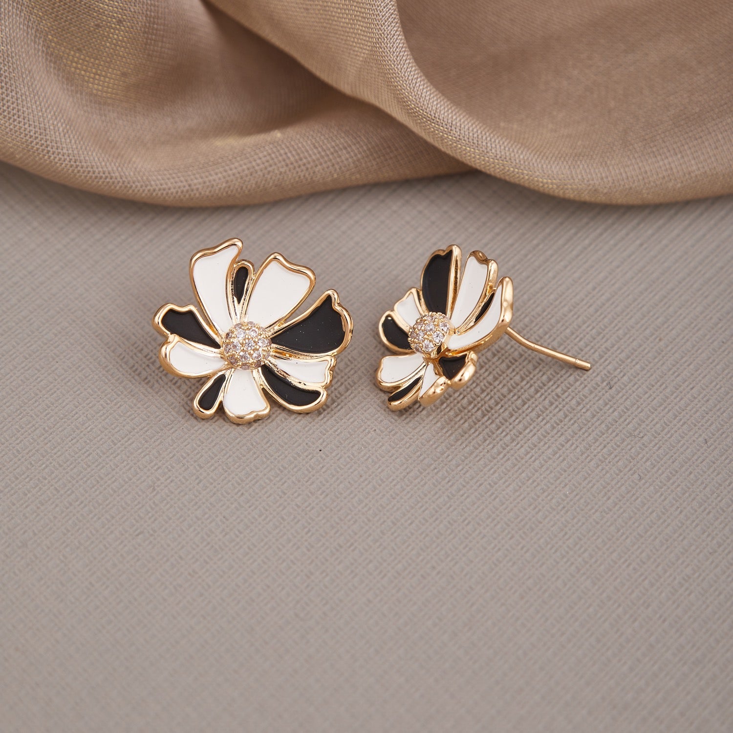 The Earrings feature a beautifully crafted pair adorned with delicate floral designs. These stylish fashion accessories showcase intricate flower details, adding a touch of elegance and charm. Perfect for those who appreciate fashionable jewelry with nature-inspired artistry.