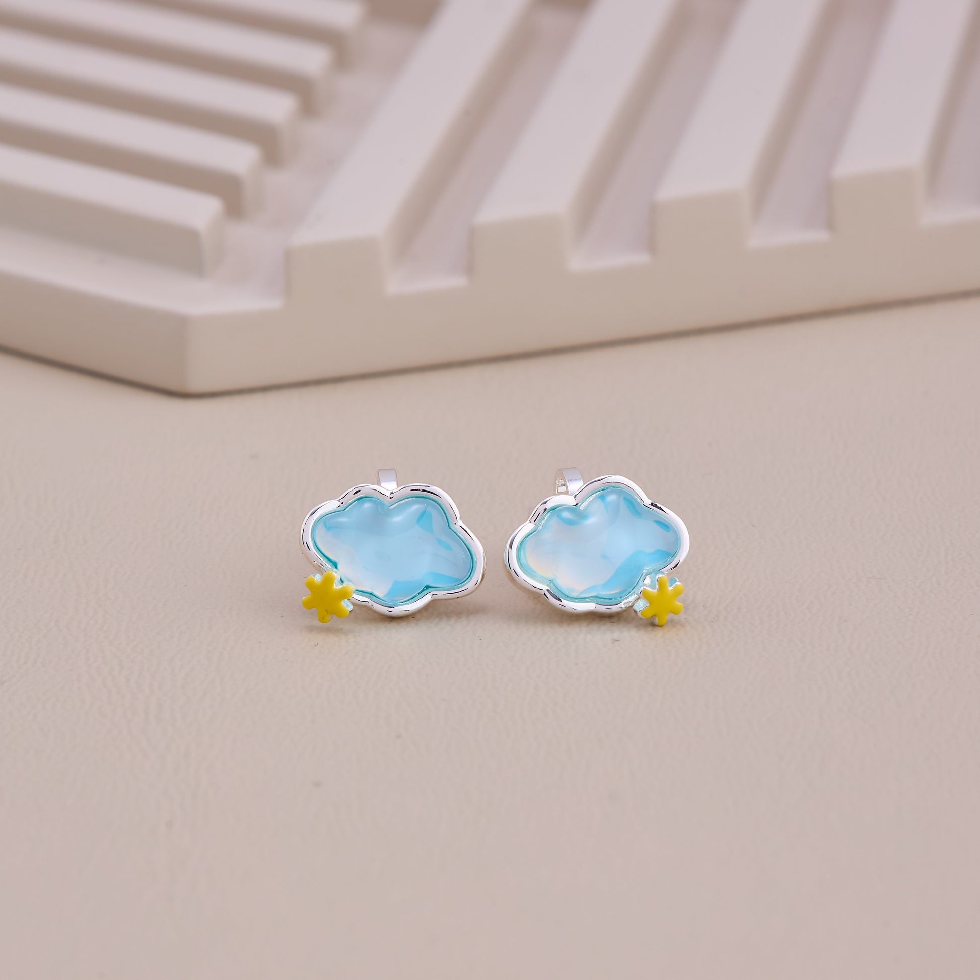 Blue Cloud Stud Earrings with Yellow Star Accent