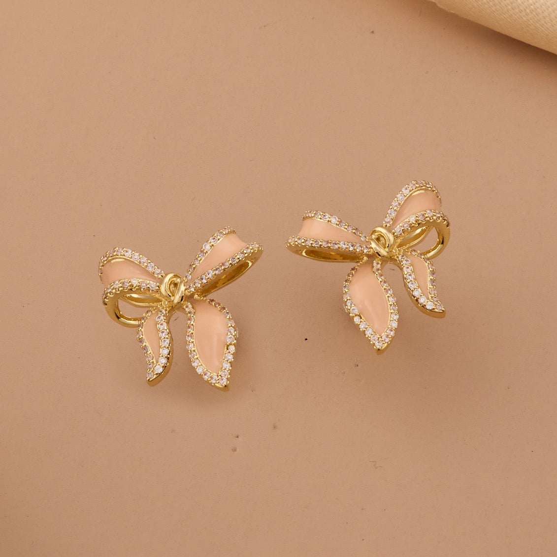 A delightful pair of earrings crafted in the shape of charming bows, showcasing intricate detailing and timeless style. Made from premium materials, these fashionable accessories add a touch of elegance and whimsy to any ensemble.