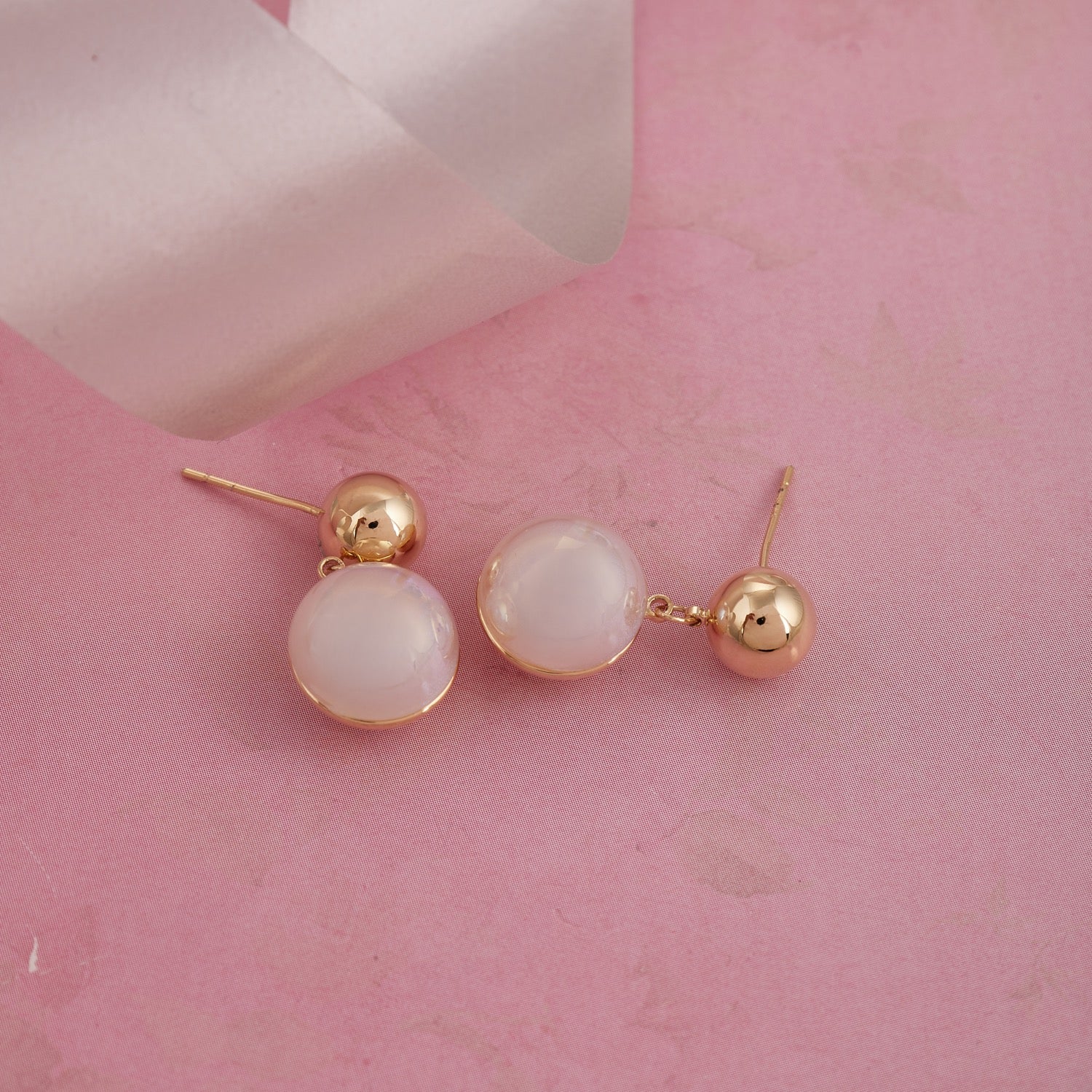 This pair of chic earrings rests gracefully on a soft pink backdrop, showcasing their artistic design. Featuring a blend of pearls, beads, and sparkling gemstones, they bring together classic beauty with modern flair. A perfect statement piece to elevate your style with elegance and charm.