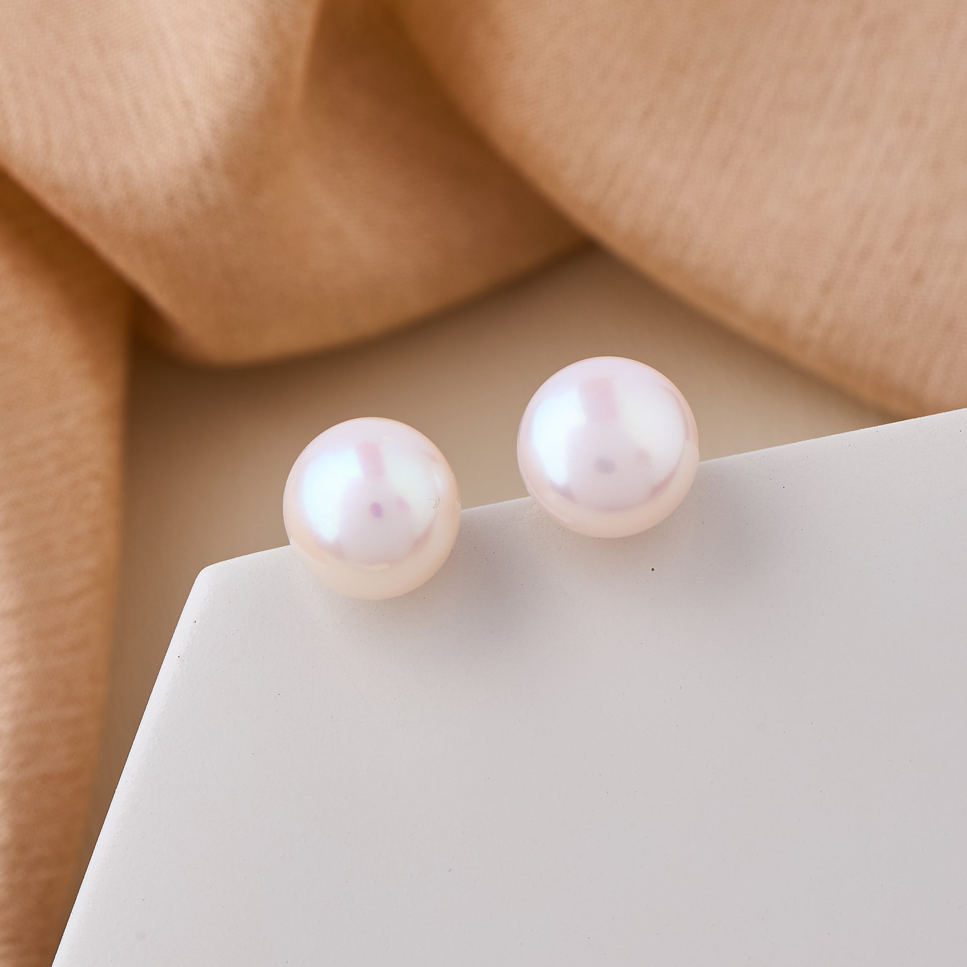 Classic Round Pearl Stud Earrings with a Soft Pink Luster