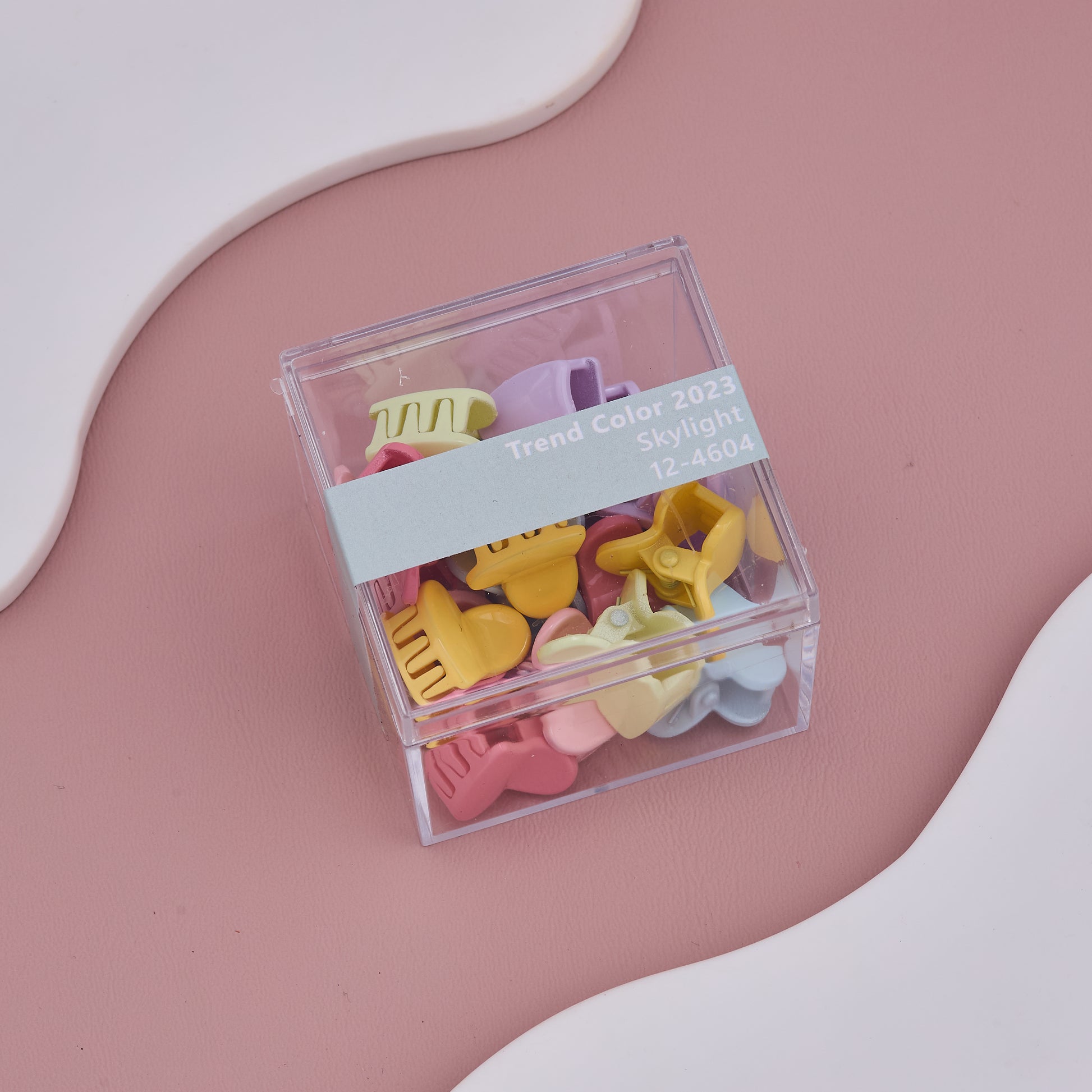 A charming collection of mini heart-shaped baby hair clips in soft pastel colors. Made from durable, smooth plastic with gentle grips, these clips hold baby hair securely without pulling. Perfect for everyday styling, photoshoots, and gifting for little girls.