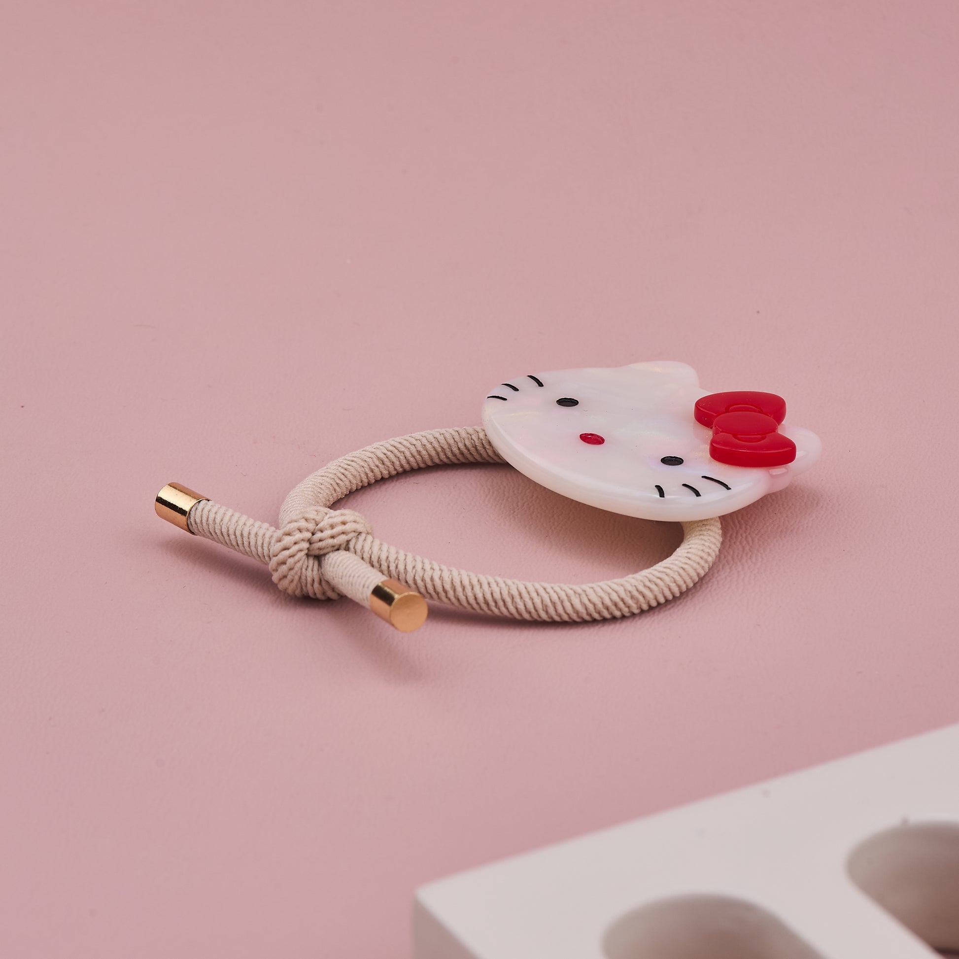 Adorable Hello Kitty hair tie featuring a glossy pearl-finish face with a red bow and soft elastic band. Gentle on hair yet secure, it keeps hairstyles neat and stylish. Perfect for daily wear, school, or casual outings — a lovely accessory for kids and girls who love cute and charming looks.