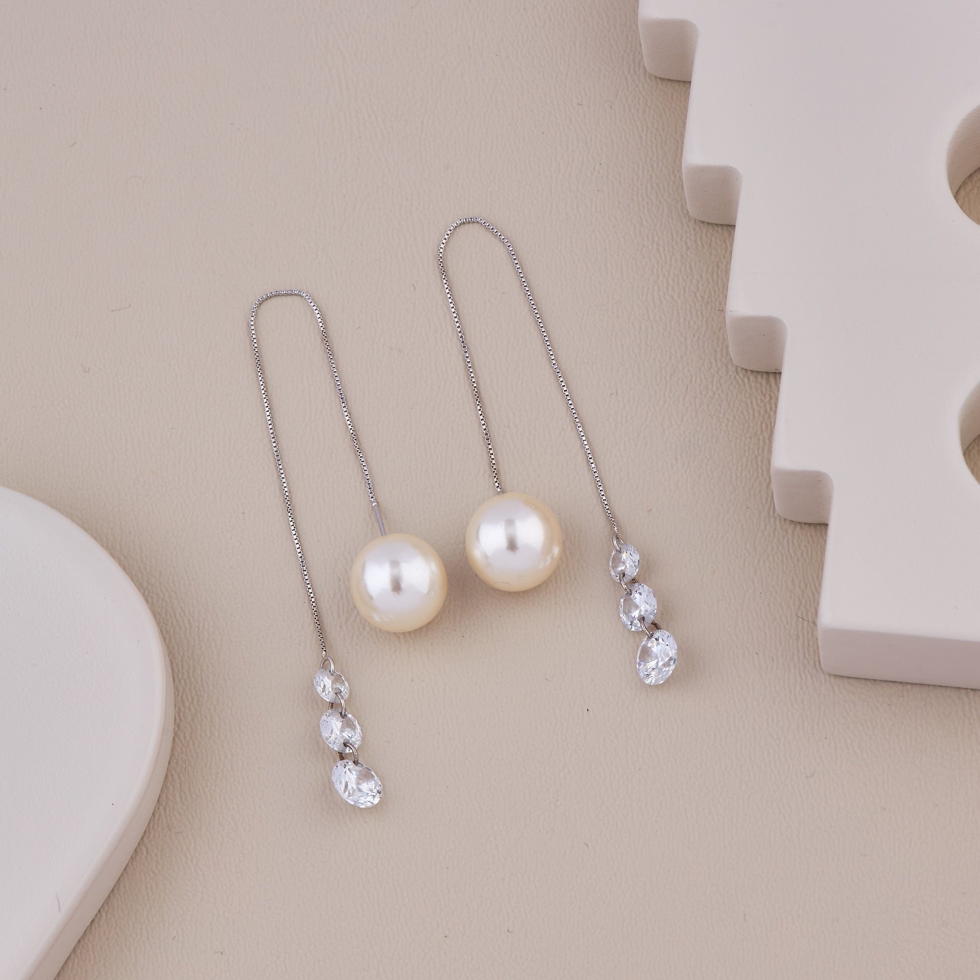 The Earrings feature an exquisite pair adorned with sparkling diamonds and lustrous pearls, combining timeless elegance with luxurious materials. Their sophisticated design and fine craftsmanship make them a stunning addition to any jewelry collection. Displayed against an indoor backdrop, these earrings exemplify the artistry and allure of high-fashion jewelry, perfect for elevating any ensemble.