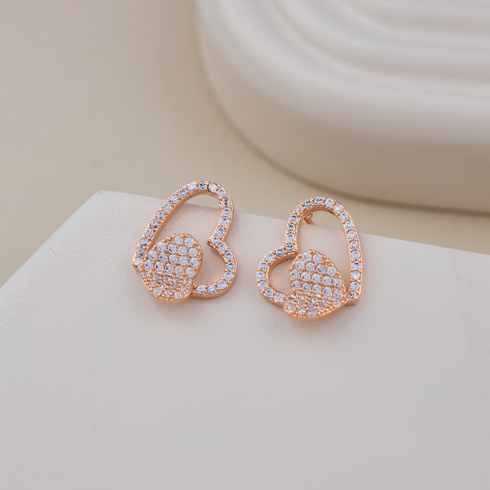 Double Heart Crystal Stud Earrings in Rose Gold Finish