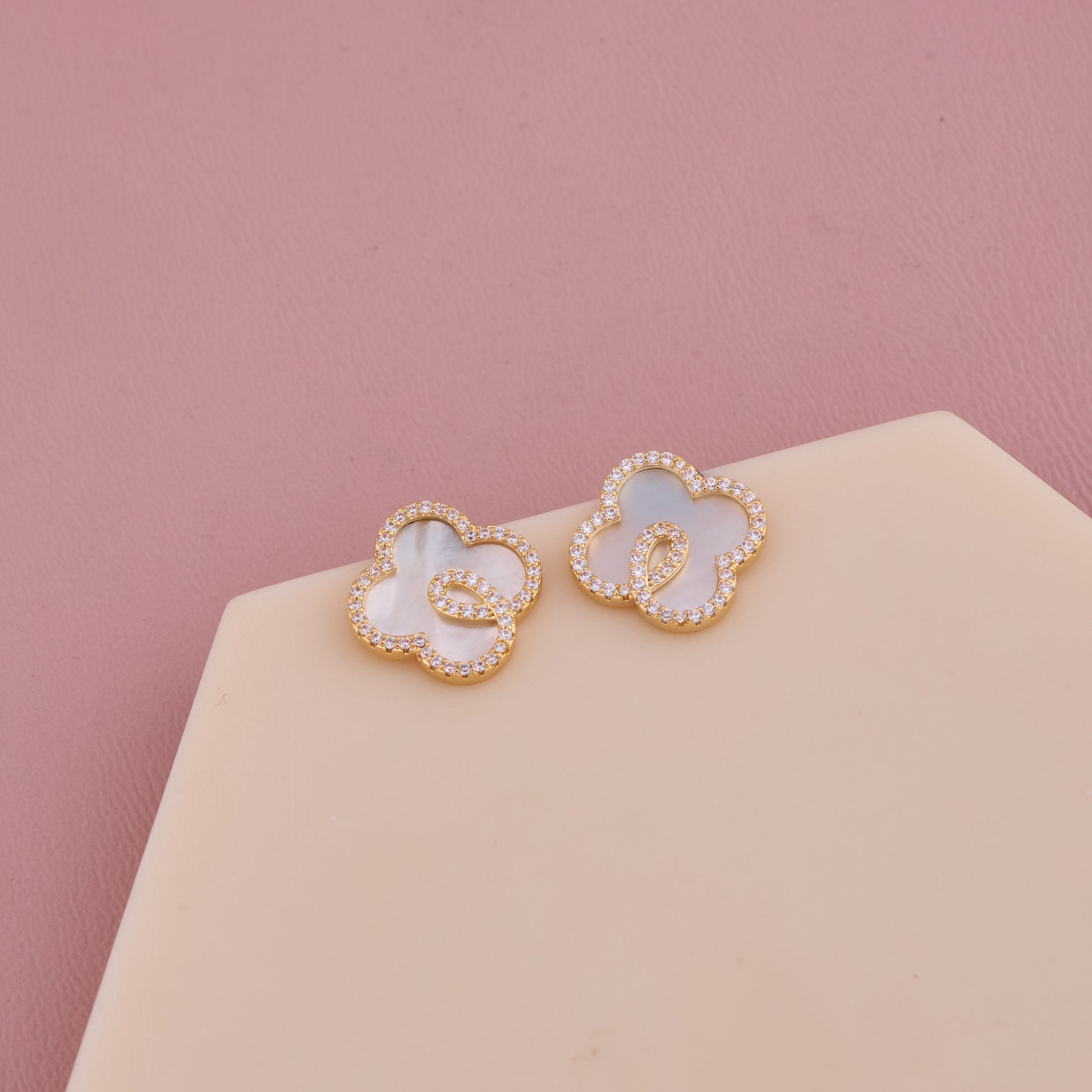 Elegant Clover-Inspired Stud Earrings with Crystal Outline