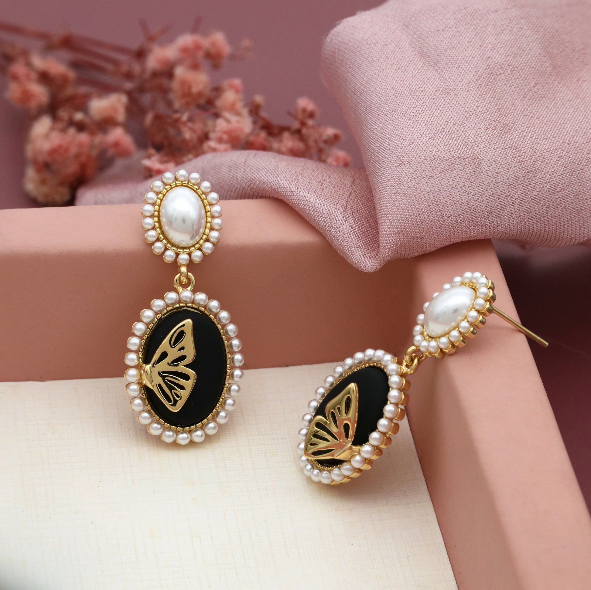 Elegant Earrings with Gold, Gemstone, and Pearl Accents
