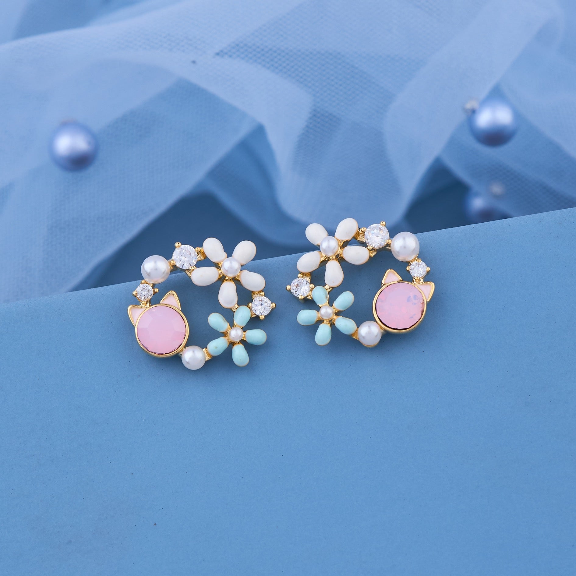 A pair of earrings is beautifully displayed on a blue surface, where the contrasting colors create an eye-catching and striking appearance. The focus remains solely on the earrings, highlighting their intricate design and fine craftsmanship, making them a standout piece of jewelry.