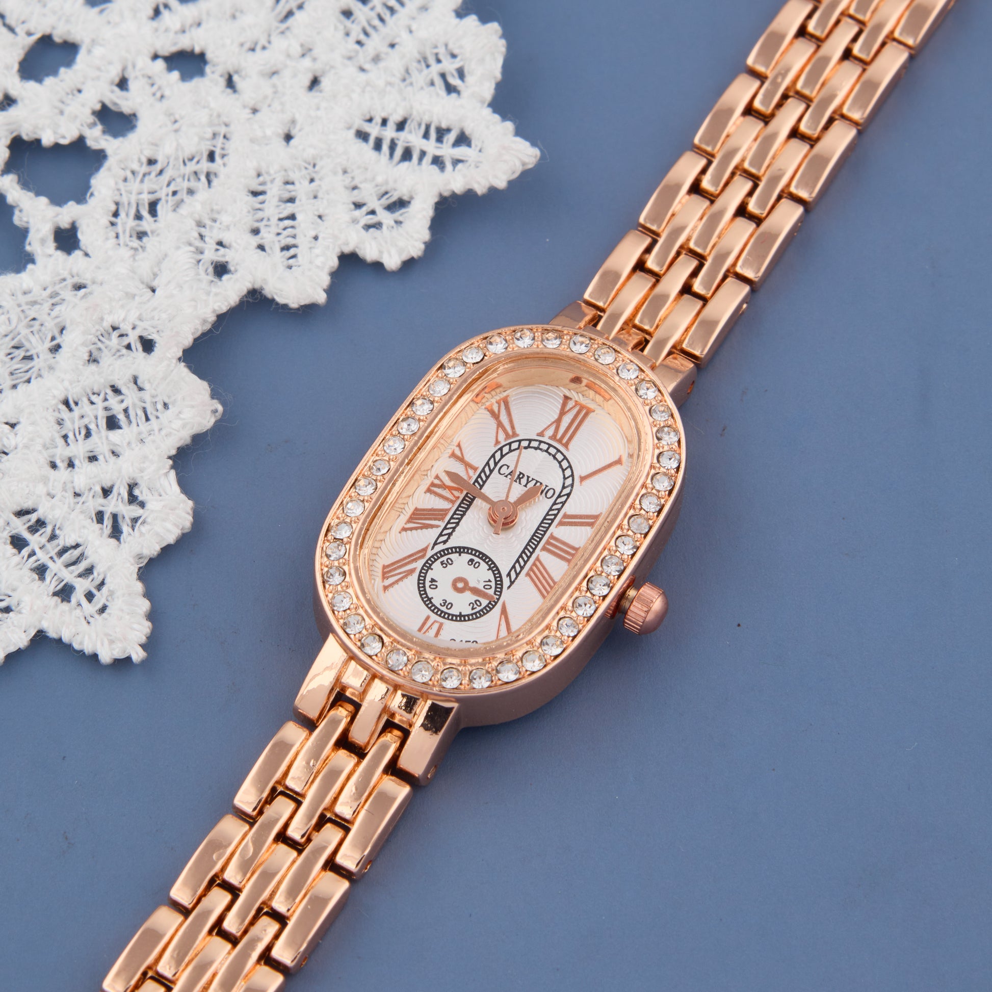 Elegant Rose Gold Roman Dial Watch with Crystal Accents for Women