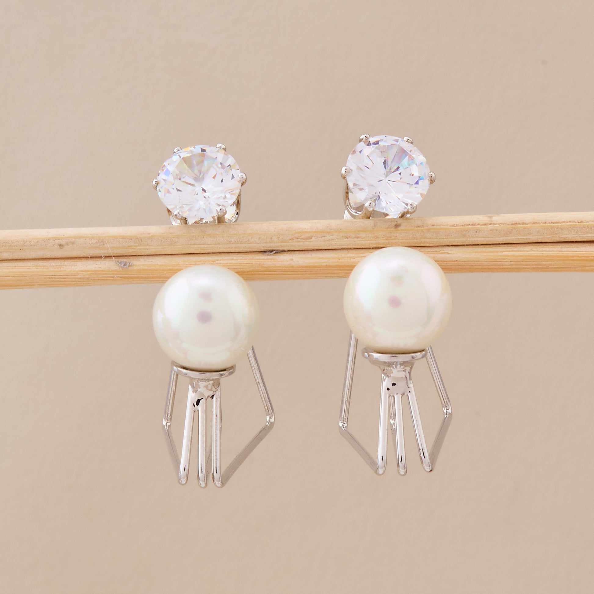 Elegant Pearl & Crystal Stud Earrings