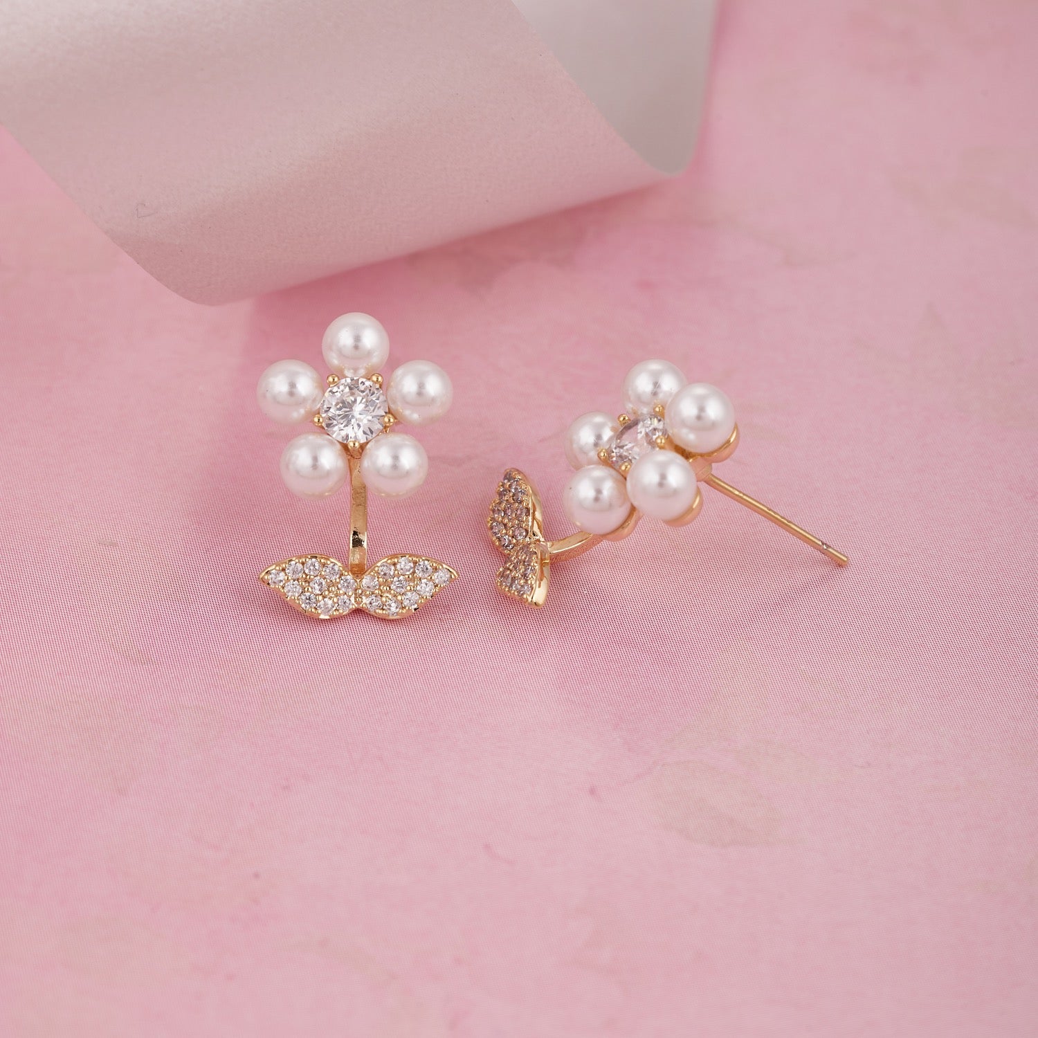 Charming floral studs featuring pearl petals and sparkling crystal leaf accents. A perfect mix of grace and shine for festive, party, or daily wear. Lightweight and classy design.