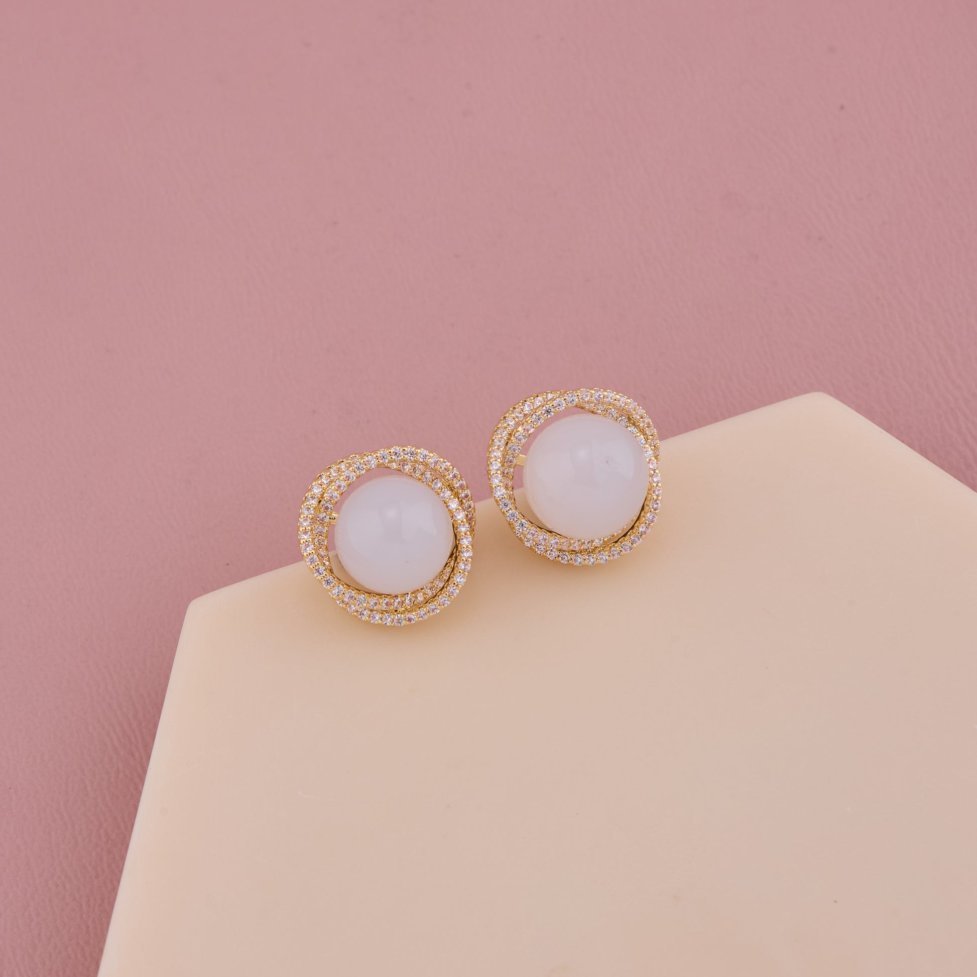 Elegant Pearl Stud Earrings with Double Halo of Sparkling Stones