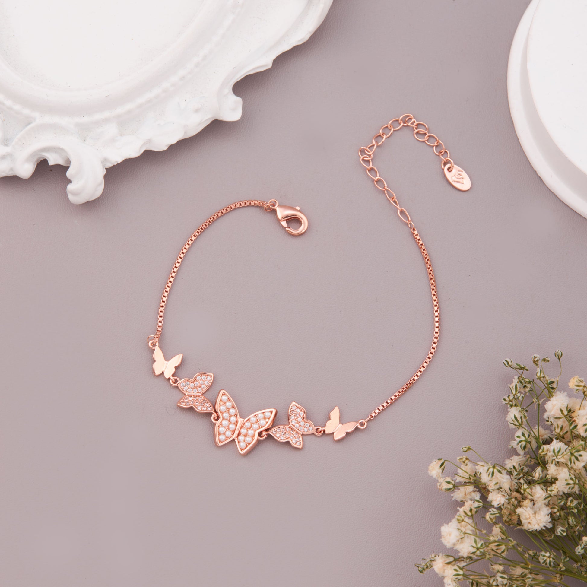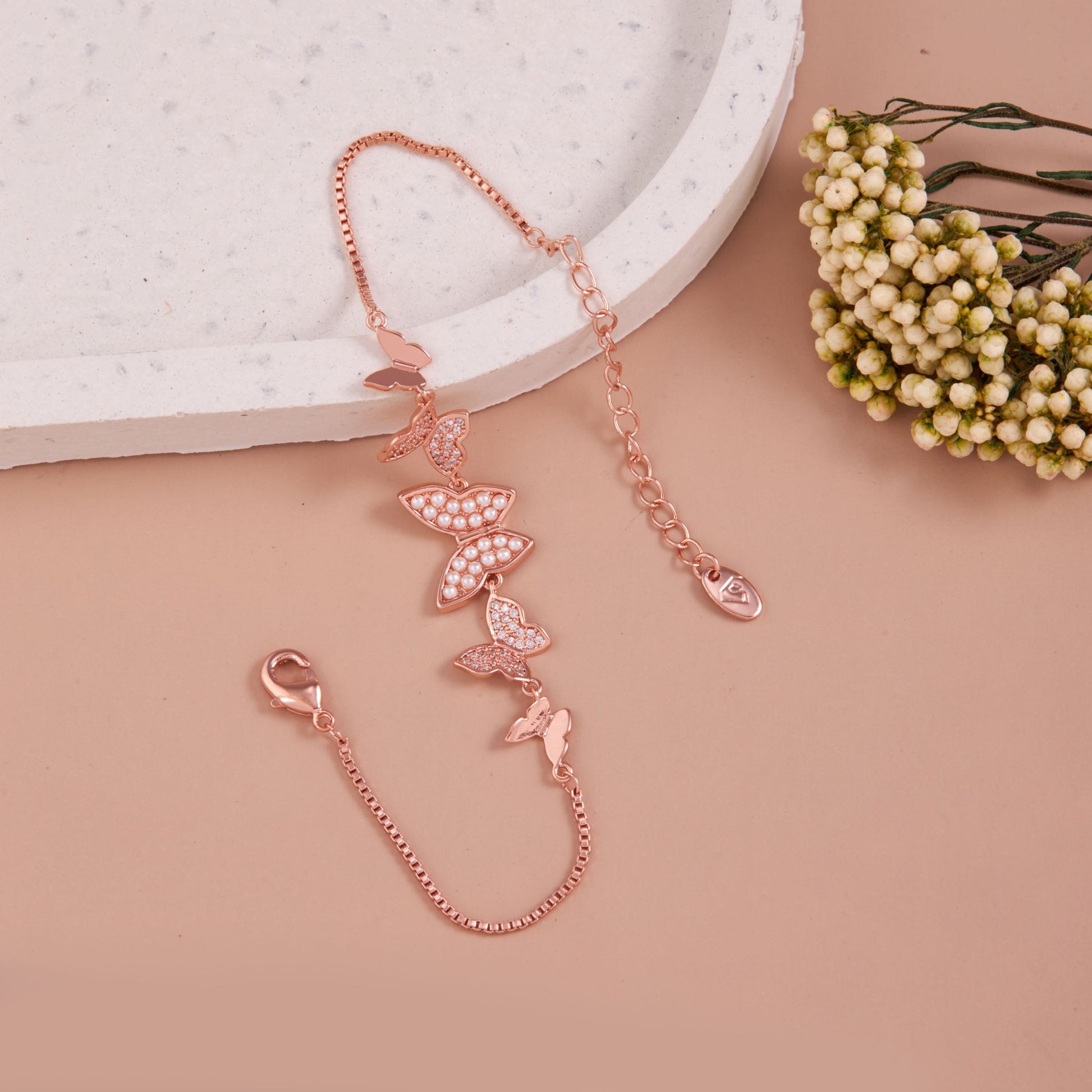 Elegant rose gold wraparound bracelet made from stainless steel and embellished with sparkling American Diamonds. A timeless piece designed by GC Premium Jewellery for modern Indian fashion.