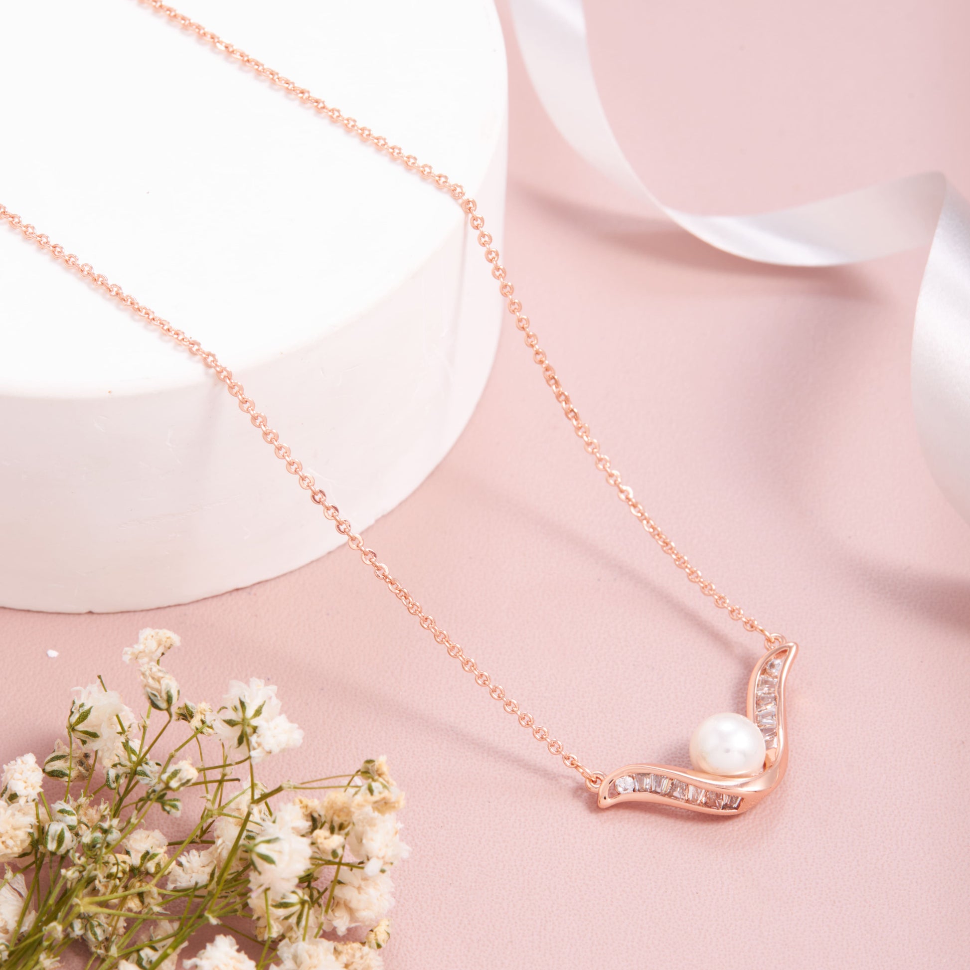 Refine your everyday elegance with the Elegant Rose Gold Pearl Pendant Necklace by GC Premium Jewellery. This graceful piece features a luminous white pearl nestled between delicately curved, crystal-studded arms, all set on a sleek rose gold chain. Perfect for both daily wear and special occasions, the timeless charm of this necklace complements all styles—from classic to contemporary. A symbol of grace and femininity, it’s a standout addition to any jewelry collection.