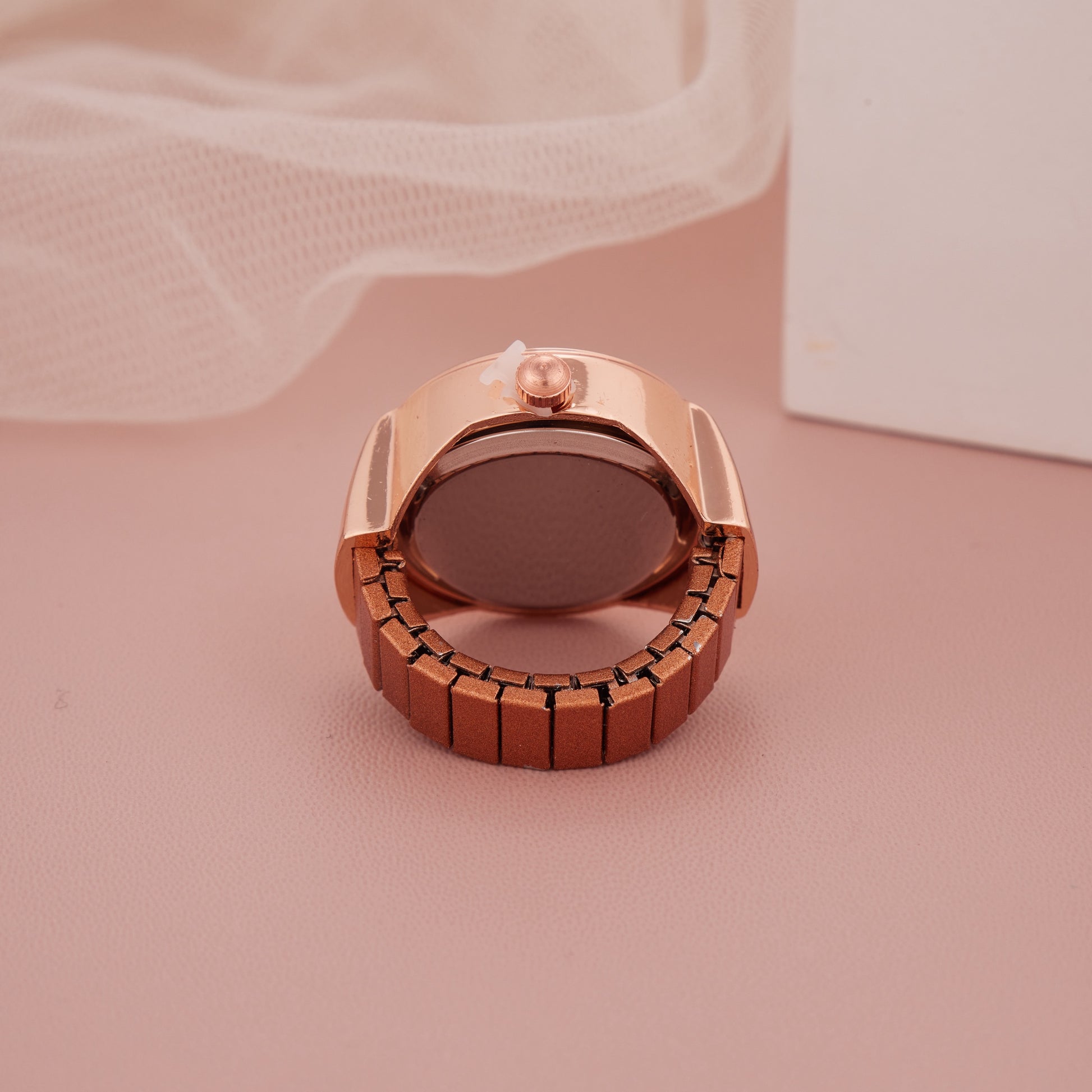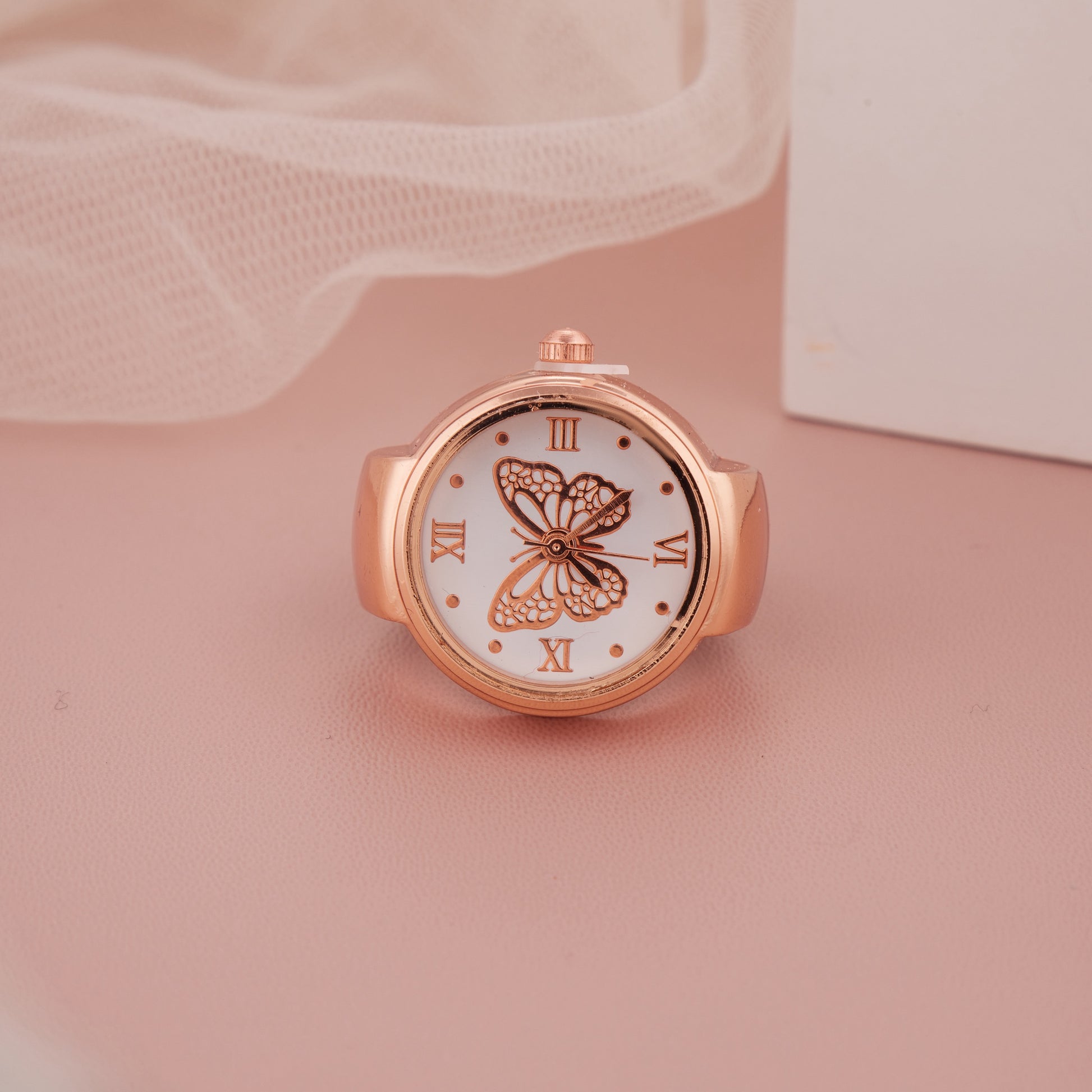 Elegant Rose Gold Ring Watch with Butterfly Dial & Roman Numerals