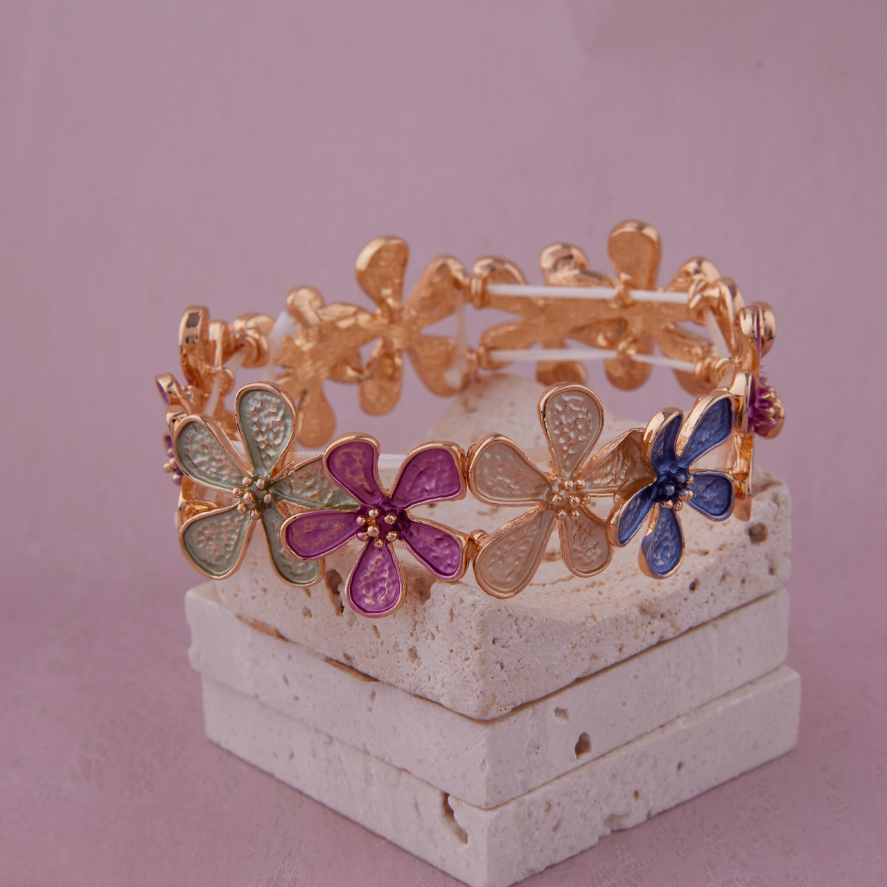 Delicately crafted with charming floral motifs, this bracelet is the perfect accessory for celebrations big and small. Whether worn at weddings, birthdays, or festive gatherings, its elegant design enhances any outfit with a graceful touch. Displayed in a refined indoor setting, this piece brings together beauty, style, and occasion-ready charm.