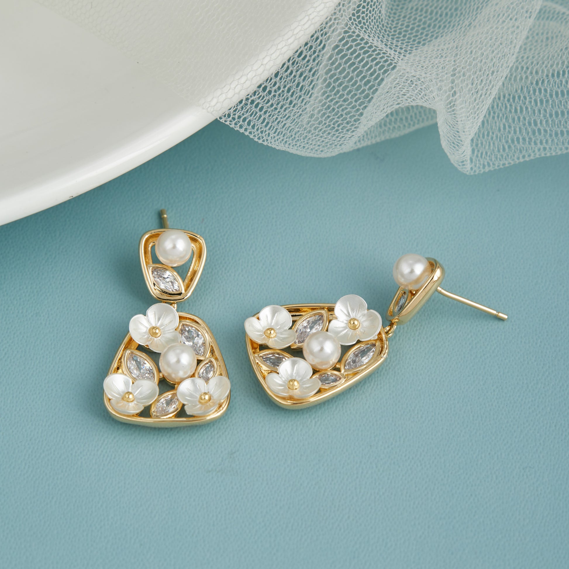 A pair of earrings crafted with intricate floral patterns and embellished with sparkling diamonds. These elegant accessories exemplify fine jewelry craftsmanship, blending beauty and sophistication to enhance any outfit with a touch of glamour.