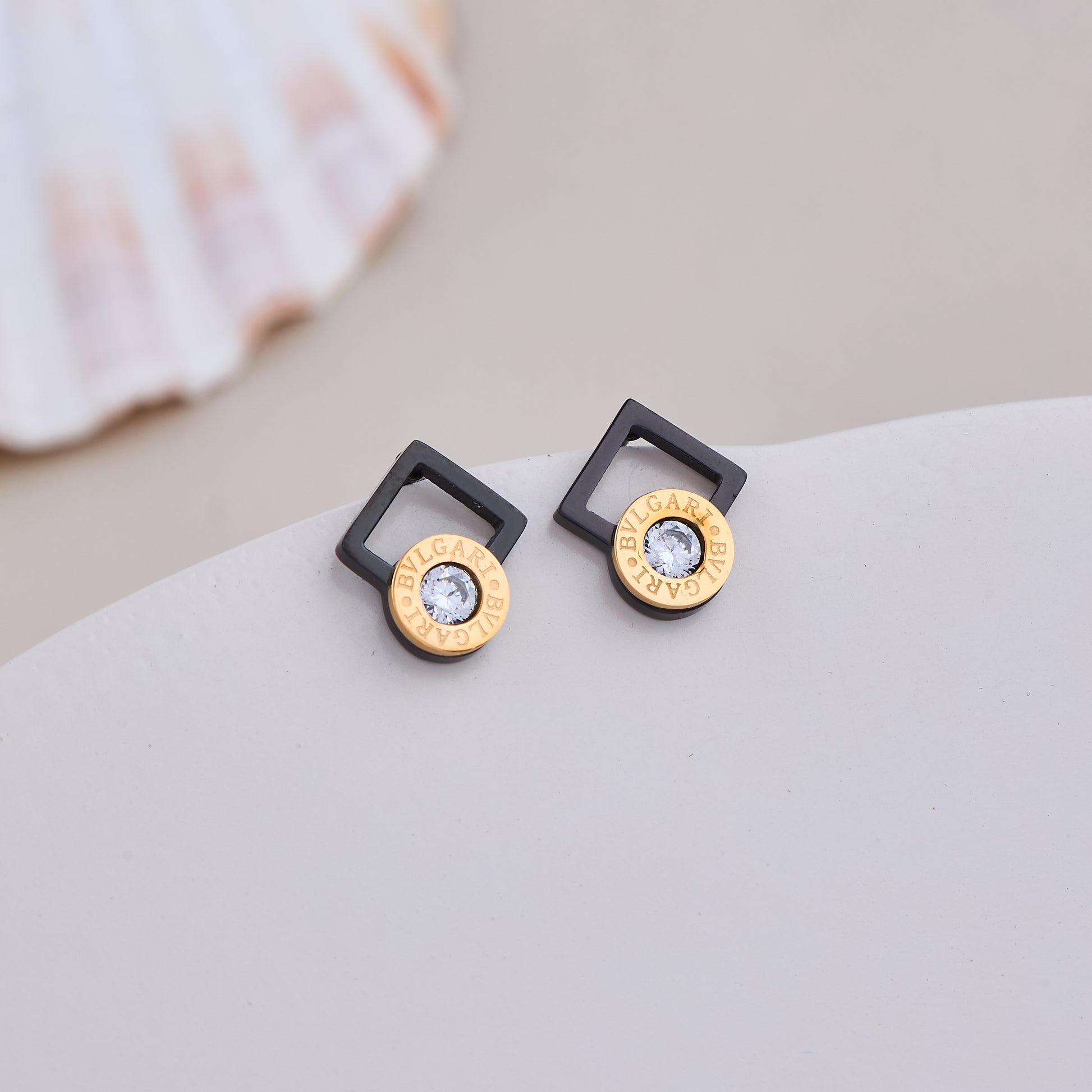 The Earrings feature a distinctive pair adorned with a white accent on the side, showcasing a bold and unique design. Categorized as a fashion accessory, they reflect a contemporary aesthetic and stylish appeal. Displayed indoors against an artistic backdrop, these earrings stand out as a creative and chic addition to any jewelry collection.