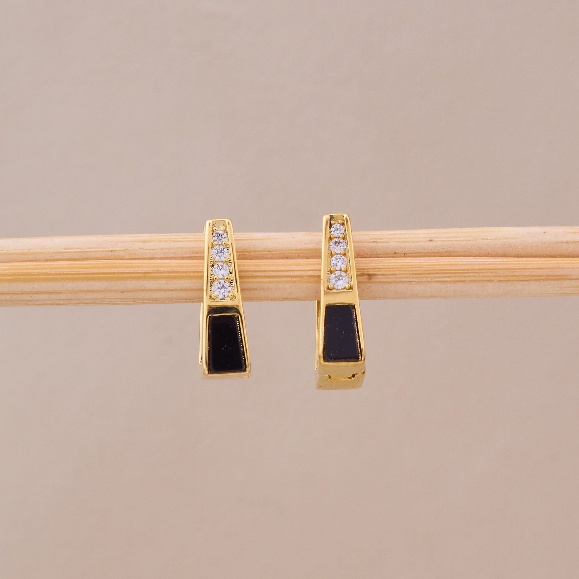 These graceful square stud earrings feature delicate gold floral motifs accented with black enamel, lustrous pearls, and sparkling stones. The intricate design combines timeless charm with modern sophistication, making them the perfect accessory for both casual and formal occasions.