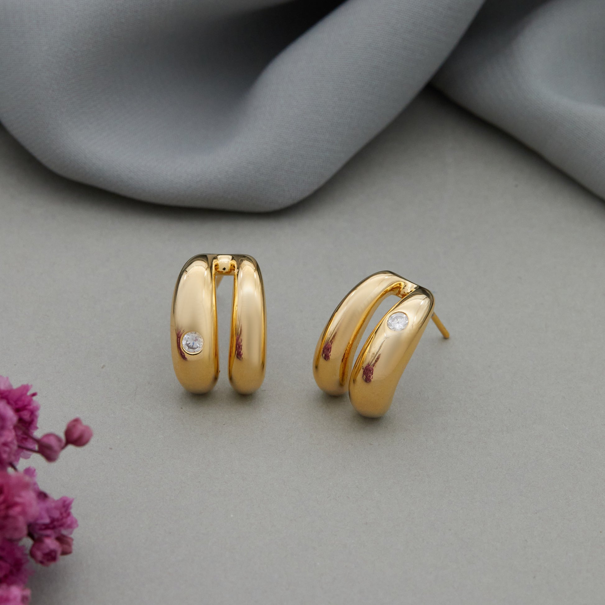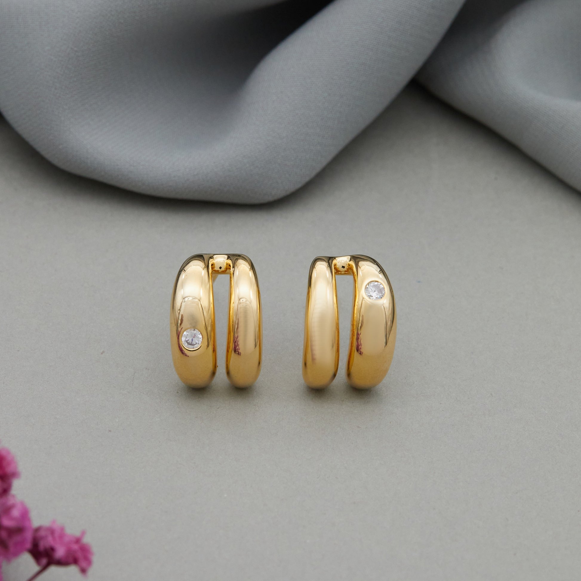 This pair of gold earrings is beautifully adorned with sparkling diamonds, combining timeless elegance with stylish design. Crafted as a fashionable accessory, they are perfect for indoor occasions, adding a touch of sophistication to any outfit.