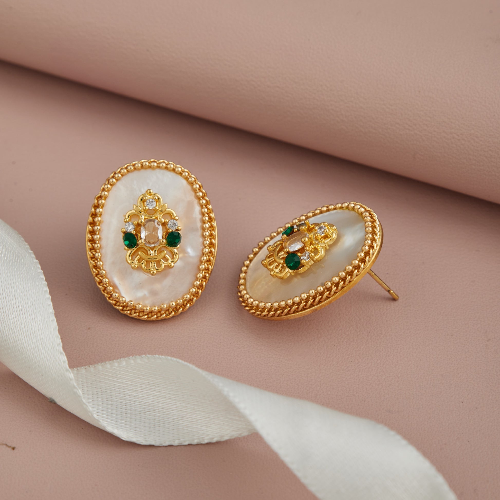 Gold Earrings with Colorful Gemstones & Ribbon Detail – Luxurious Charm