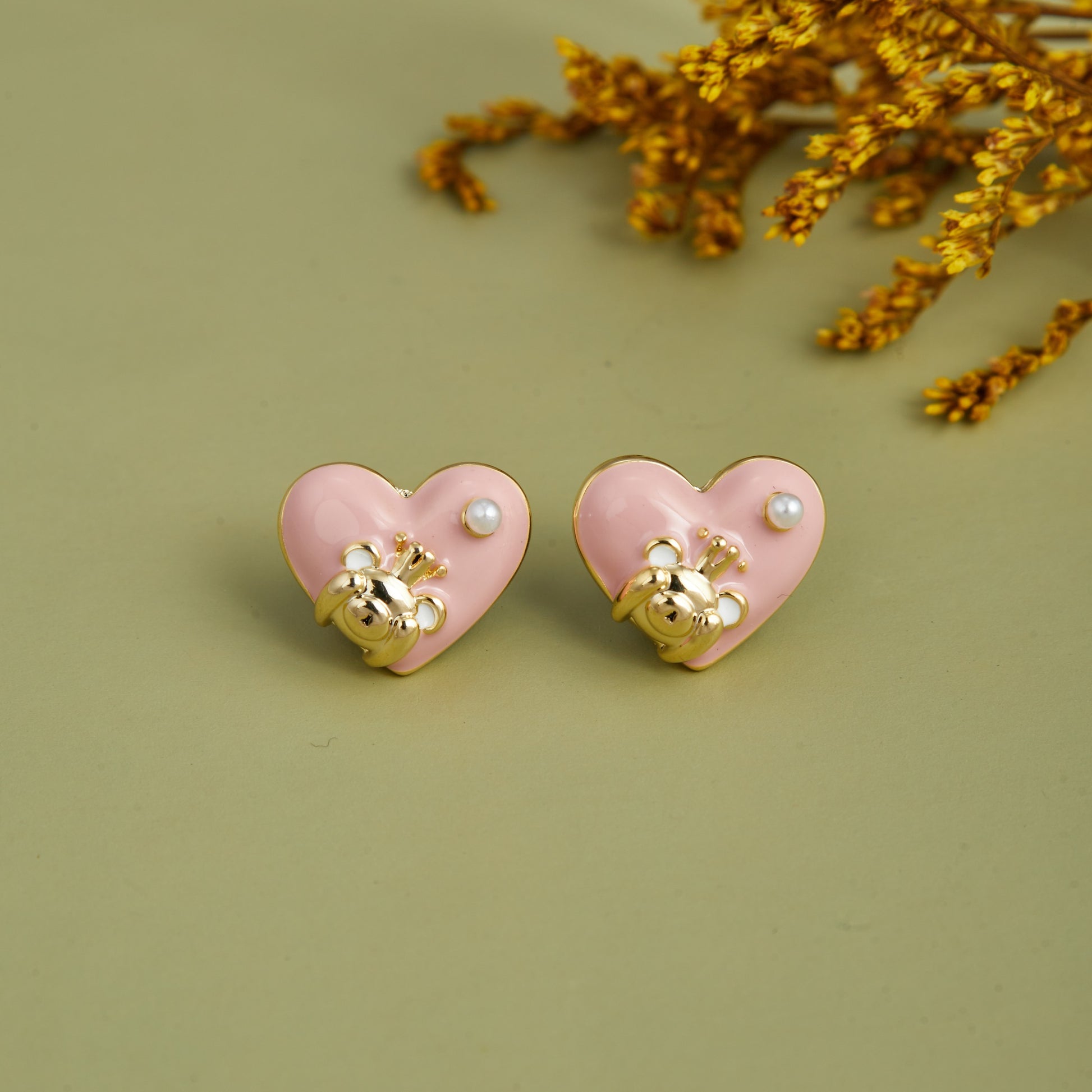 Pink Heart-Shaped Enamel Earrings — Cute & Playful Accessory