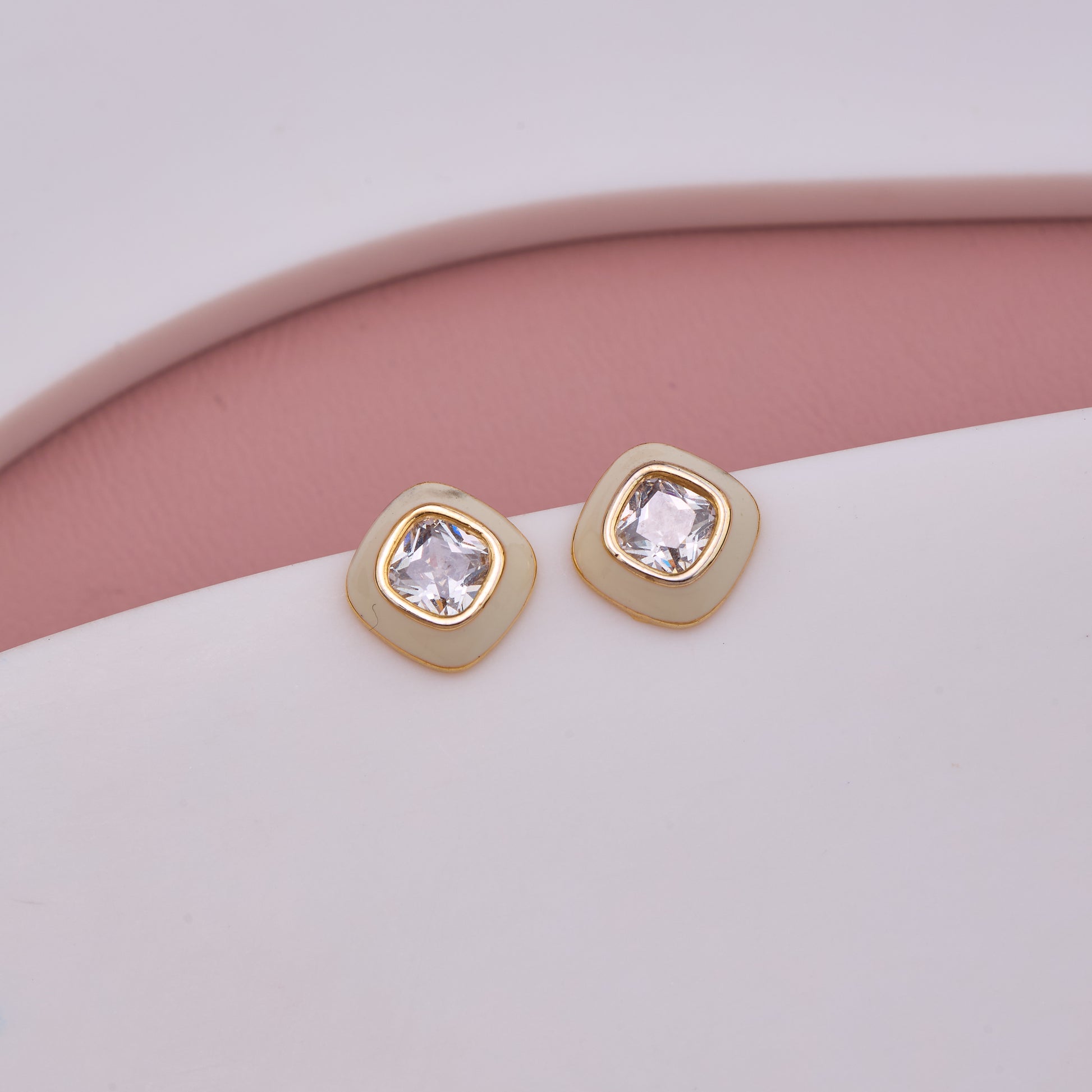 The Earrings feature a distinctive pair adorned with a white accent on the side, showcasing a bold and unique design. Categorized as a fashion accessory, they reflect a contemporary aesthetic and stylish appeal. `Displayed indoors against an artistic backdrop, these earrings stand out as a creative and chic addition to any jewelry collection.