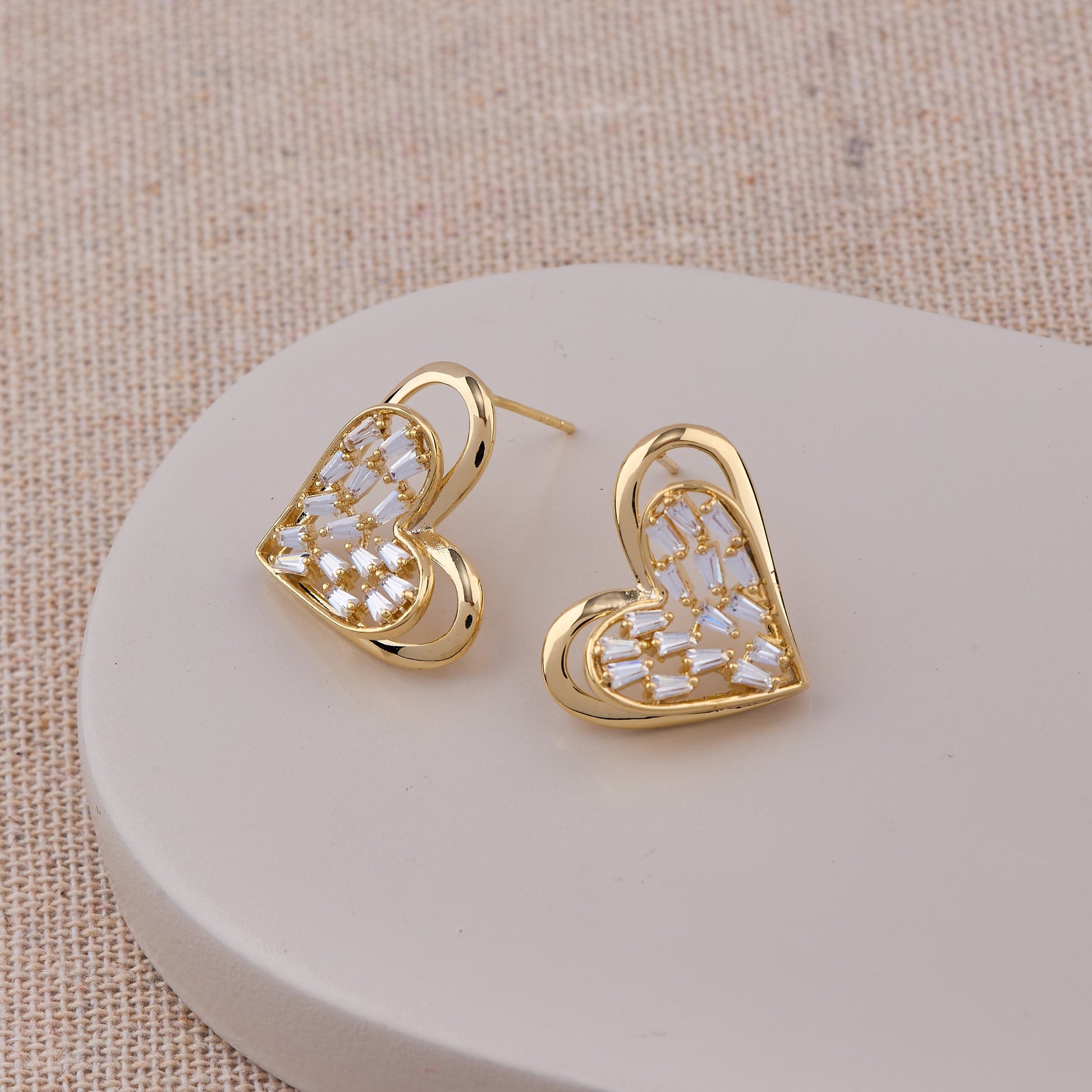 Golden Heart Diamond Earrings Elegance with a Sparkle
