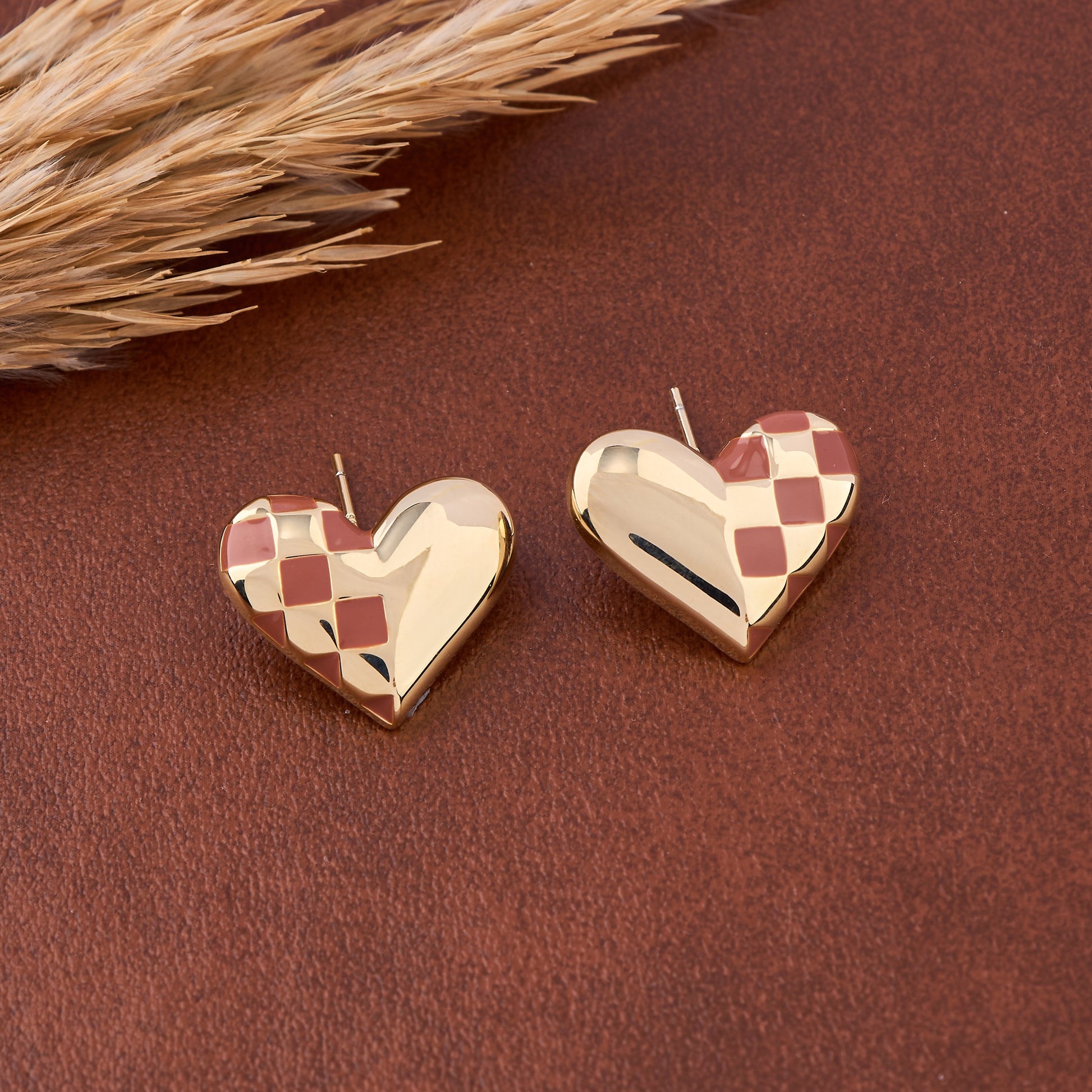 Golden Heart Earrings Warm Brown Elegance