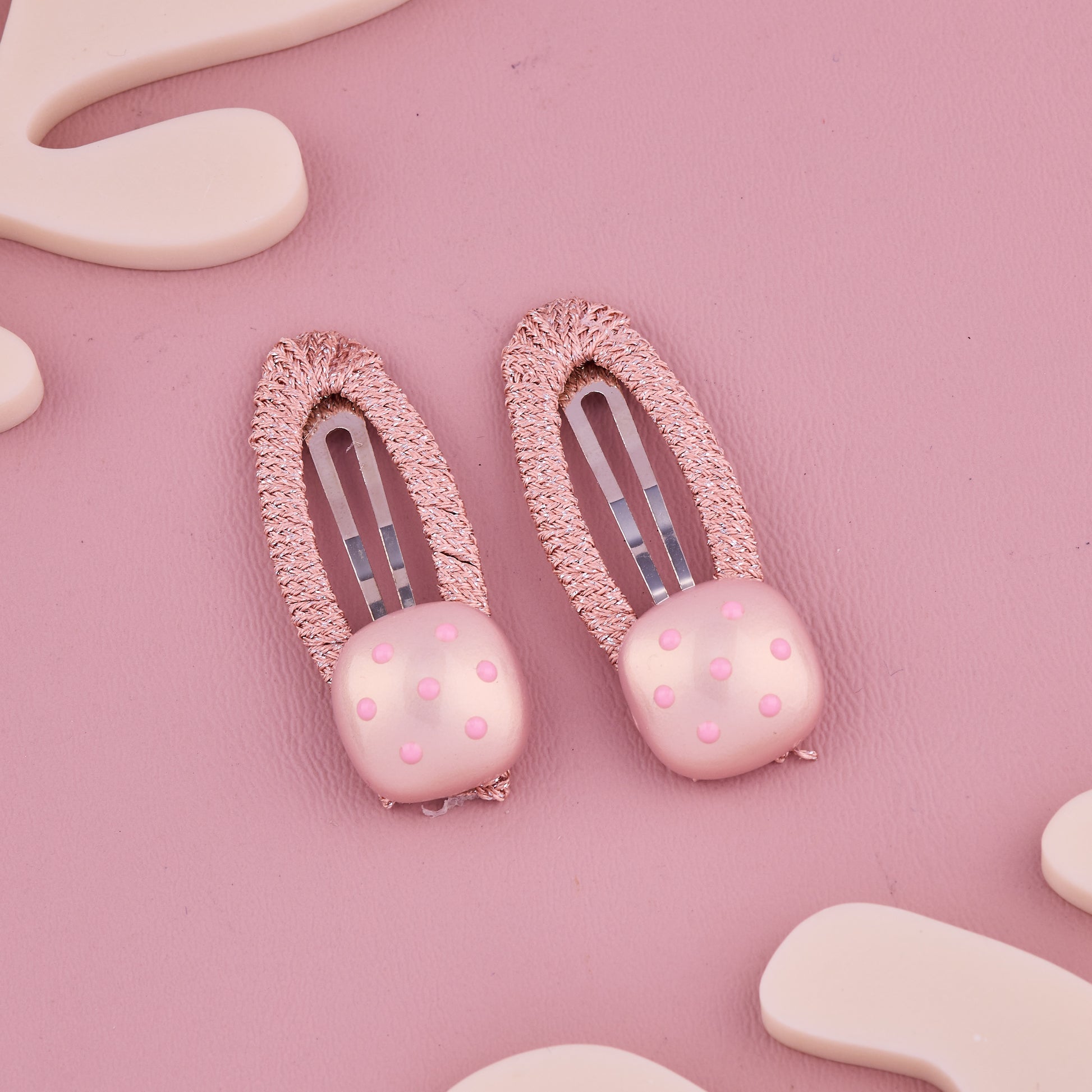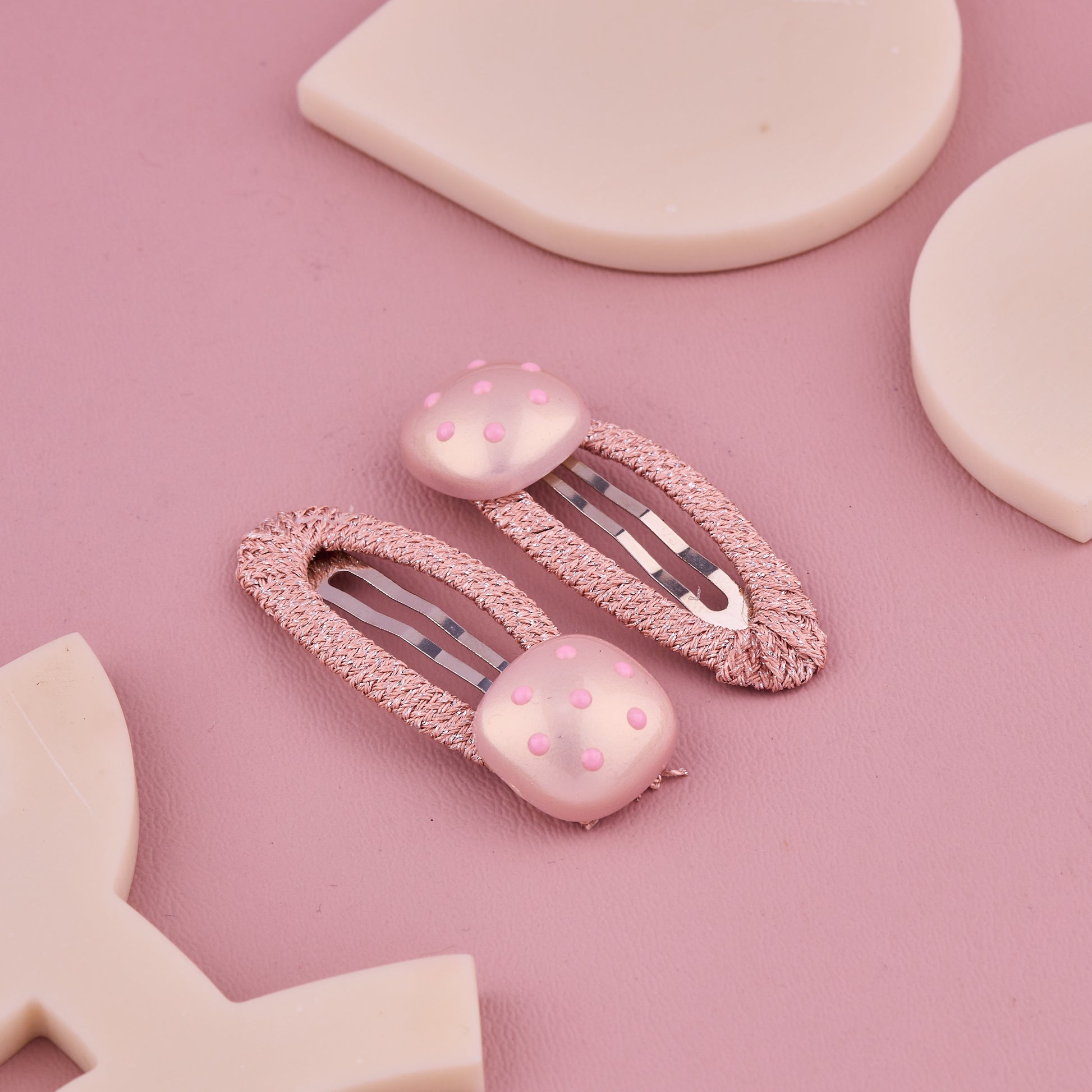 Charming handmade hair pin with soft pink fabric and cute polka dot design. Lightweight, safe, and gentle for baby hair — perfect for parties, photoshoots, or daily wear. Adds a sweet and stylish touch to your little one’s look.