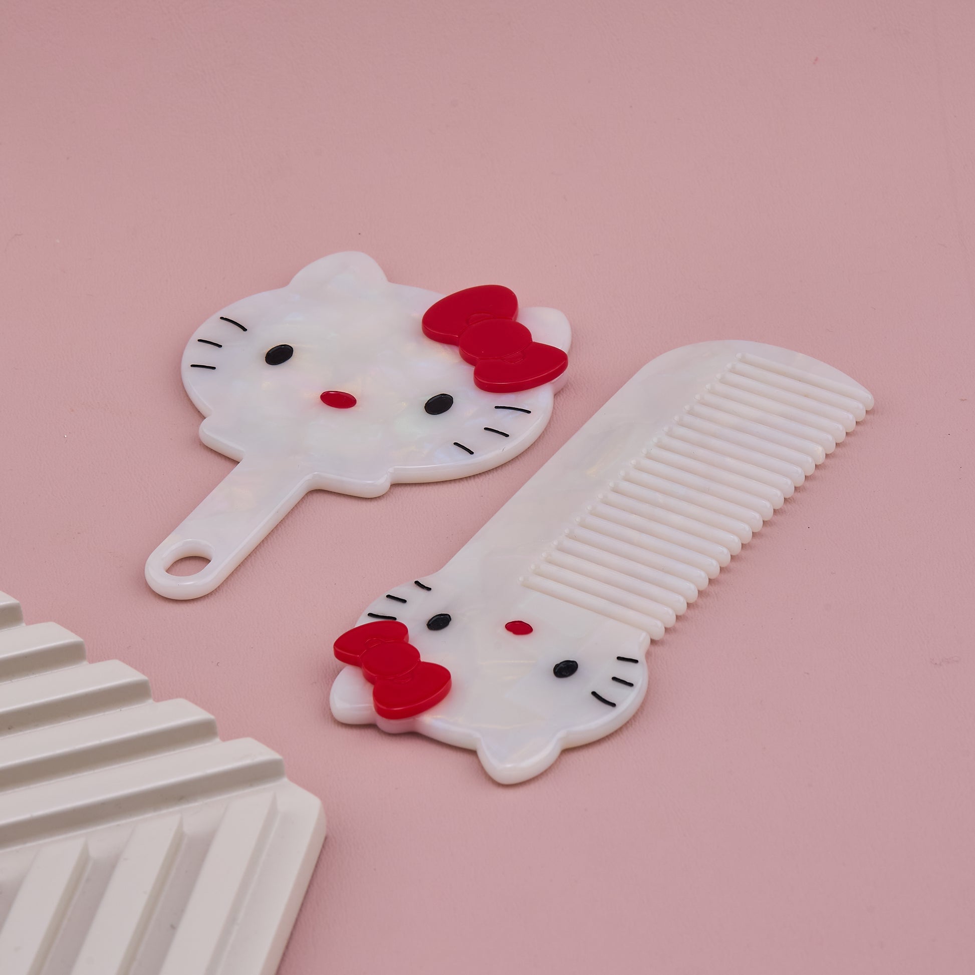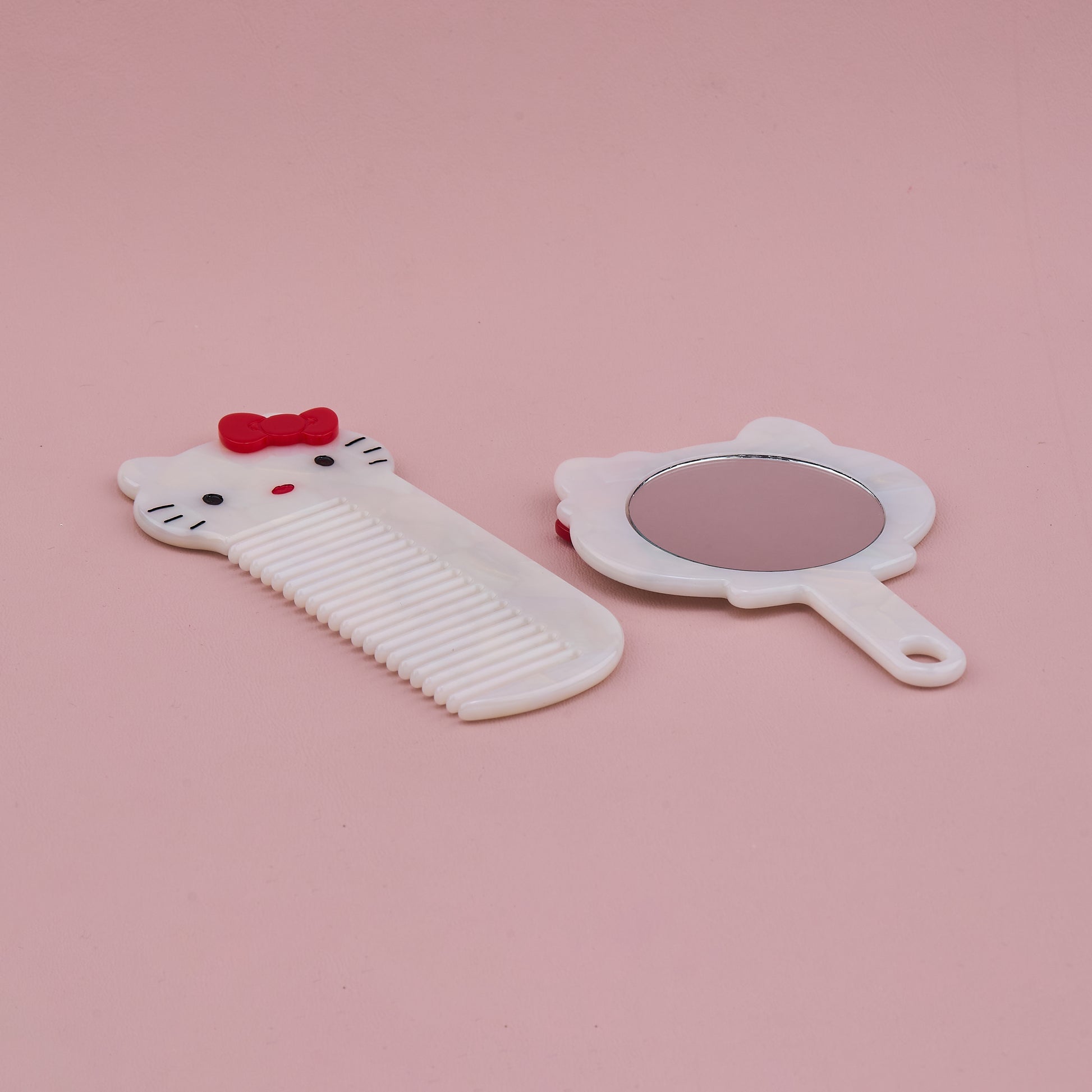 Charming Hello Kitty-themed comb and mirror set made from high-quality acrylic with a glossy pearl finish. The cute design adds fun to your daily grooming routine. Compact, lightweight, and easy to carry — perfect for school, travel, or gifting to kids and girls who love stylish accessories.