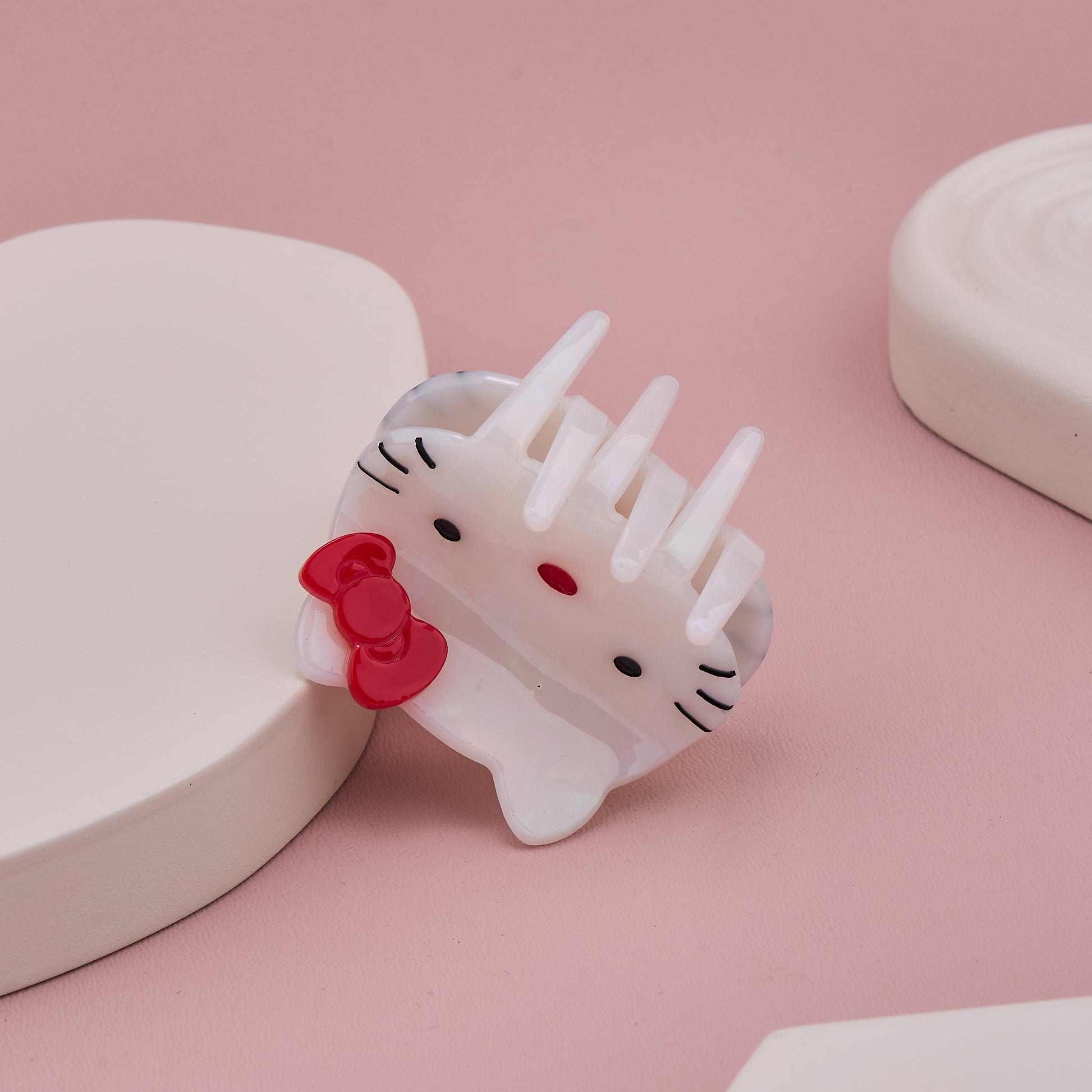 Stylish Hello Kitty-inspired hair claw clip with a glossy pearl finish and cute red bow detail. Designed for a strong yet gentle grip, it holds hair securely without pulling. Perfect for everyday wear, parties, or gifting, this adorable accessory adds a fun and playful charm to any hairstyle.
