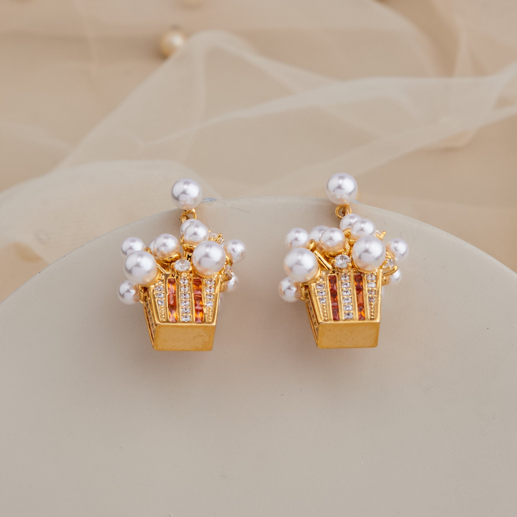 The Earrings feature a distinctive pair adorned with a white accent on the side, showcasing a bold and unique design. Categorized as a fashion accessory, they reflect a contemporary aesthetic and stylish appeal. Displayed indoors against an artistic backdrop, these earrings stand out as a creative and chic addition to any jewelry collection.