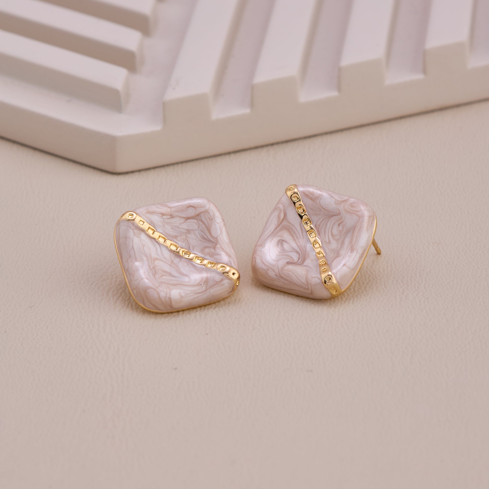 The Earrings feature a distinctive pair adorned with a white accent on the side, showcasing a bold and unique design. Categorized as a fashion accessory, they reflect a contemporary aesthetic and stylish appeal. Displayed indoors against an artistic backdrop, these earrings stand out as a creative and chic addition to any jewelry collection.