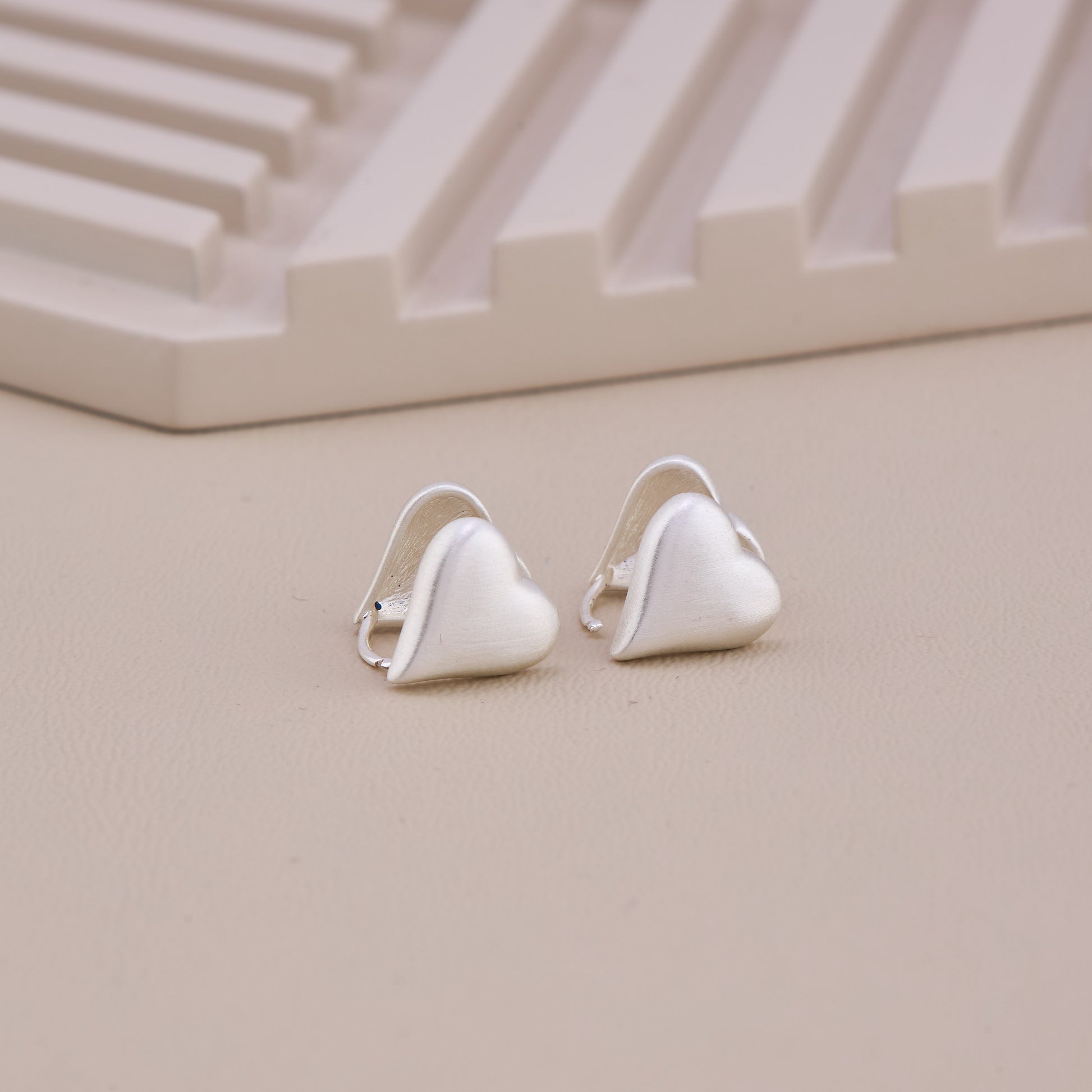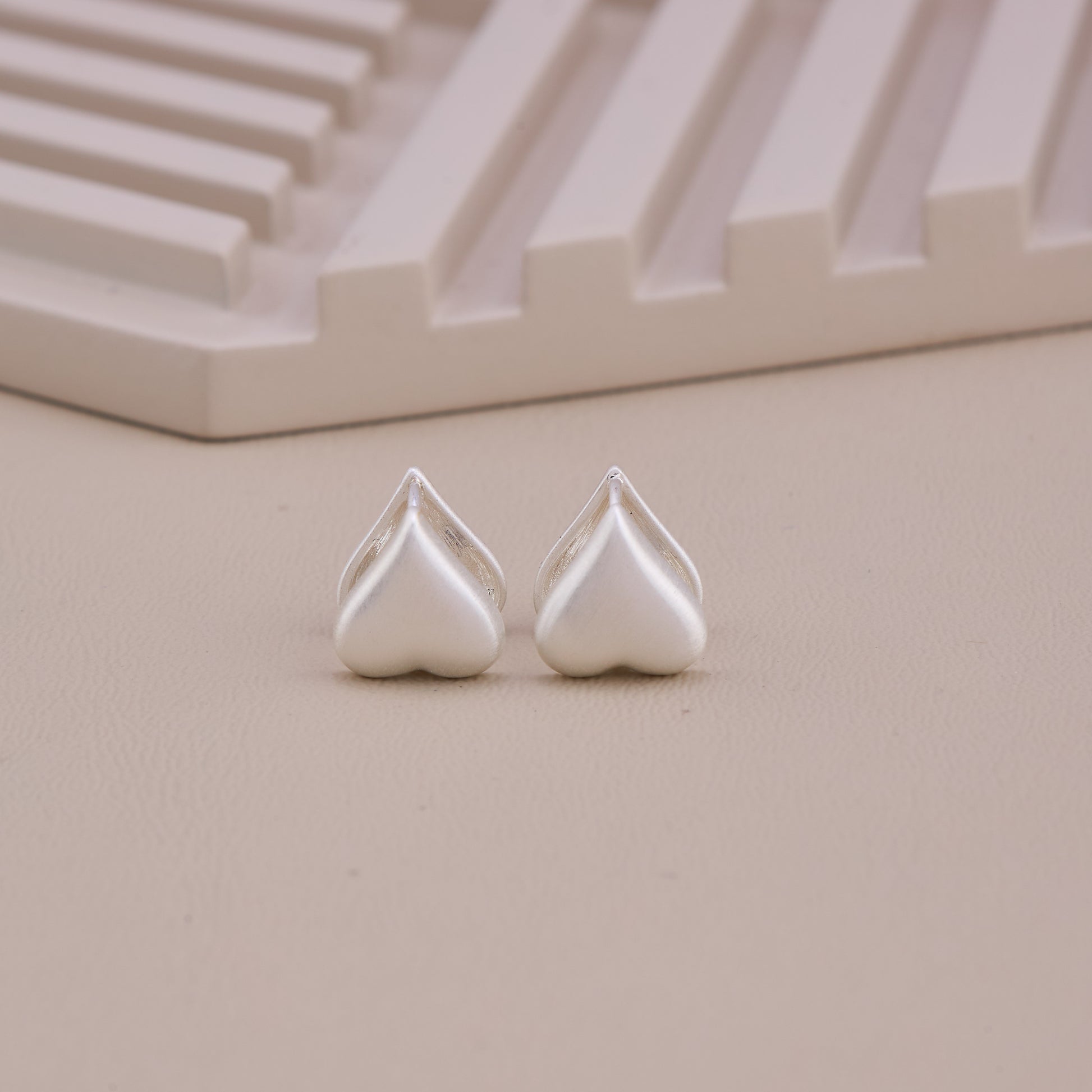 Matte Silver Heart Stud Earrings