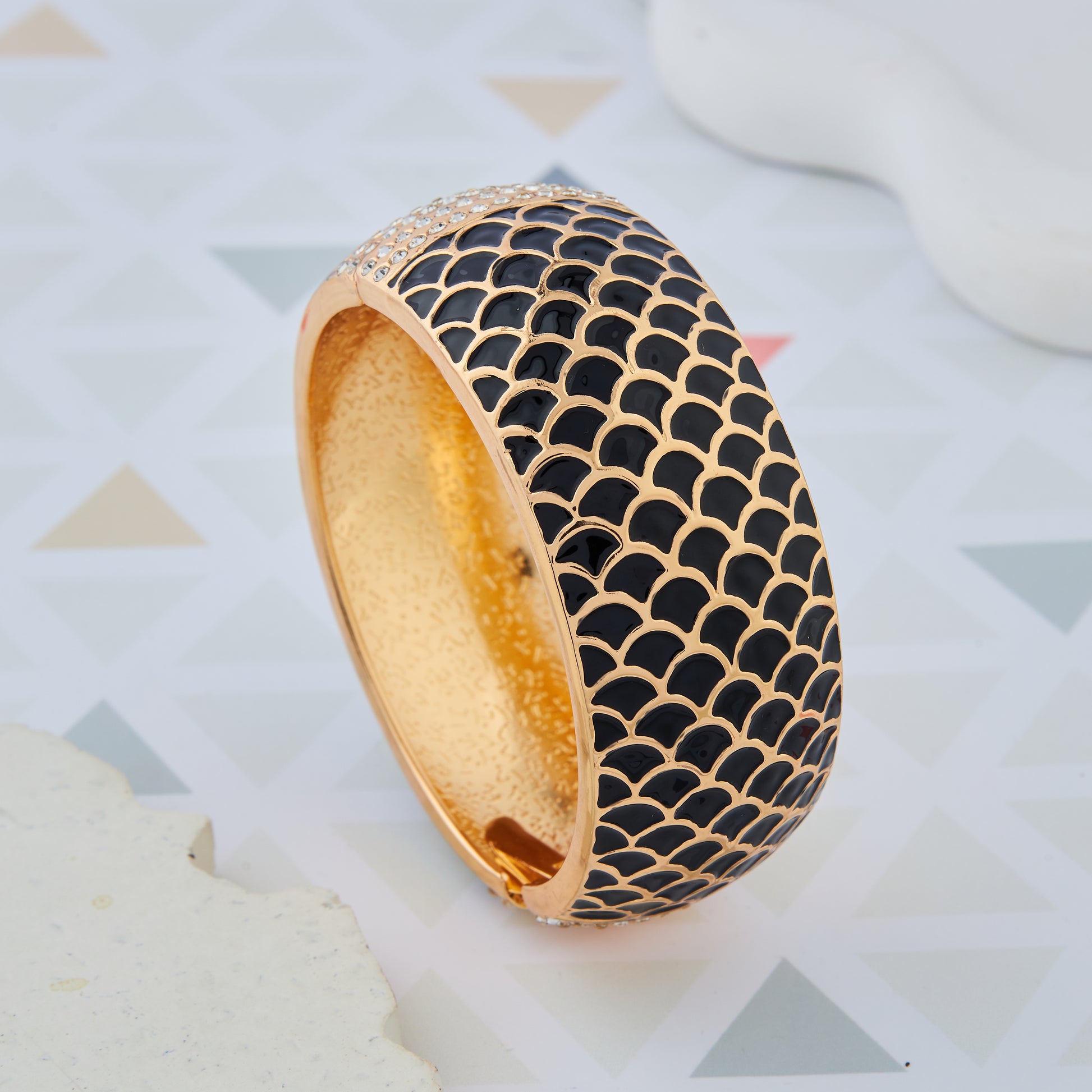 Make a striking statement with the Midnight Luxe Bracelet by GC Premium Jewellery. This gold and black armlet blends sleek sophistication with bling-worthy style, making it a standout accessory for fashion-forward individuals. Whether worn solo or layered, it adds a bold touch to any indoor or evening look.