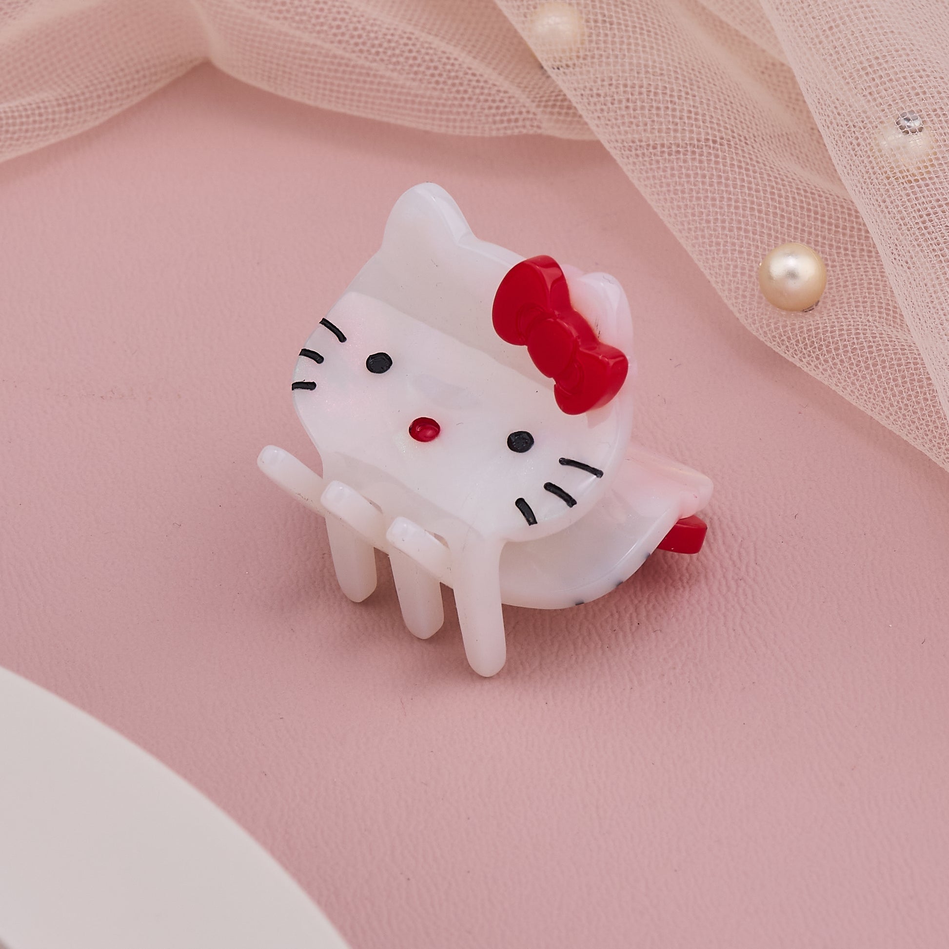 Cute and compact Hello Kitty-style hair claw clip with a glossy pearl finish and red bow accent. Perfect for securing small sections of hair or adding a fun touch to your hairstyle. Made from durable acrylic, it’s lightweight, easy to use, and ideal for kids and girls who love adorable accessories.