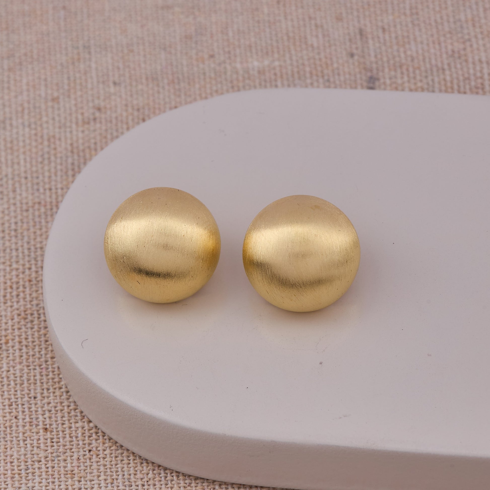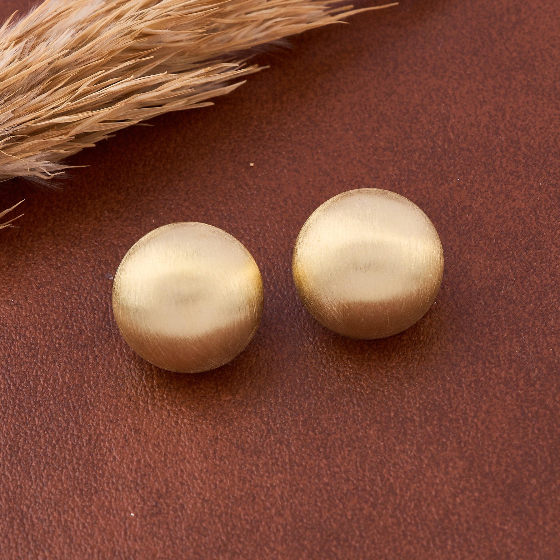 The Earrings feature two round gold balls placed beside a green plant. These simple yet elegant earrings showcase a minimalist design that highlights the timeless beauty of gold. The contrast between the shiny gold and the natural greenery creates a visually appealing and serene composition, making them a perfect addition to any jewelry collection.