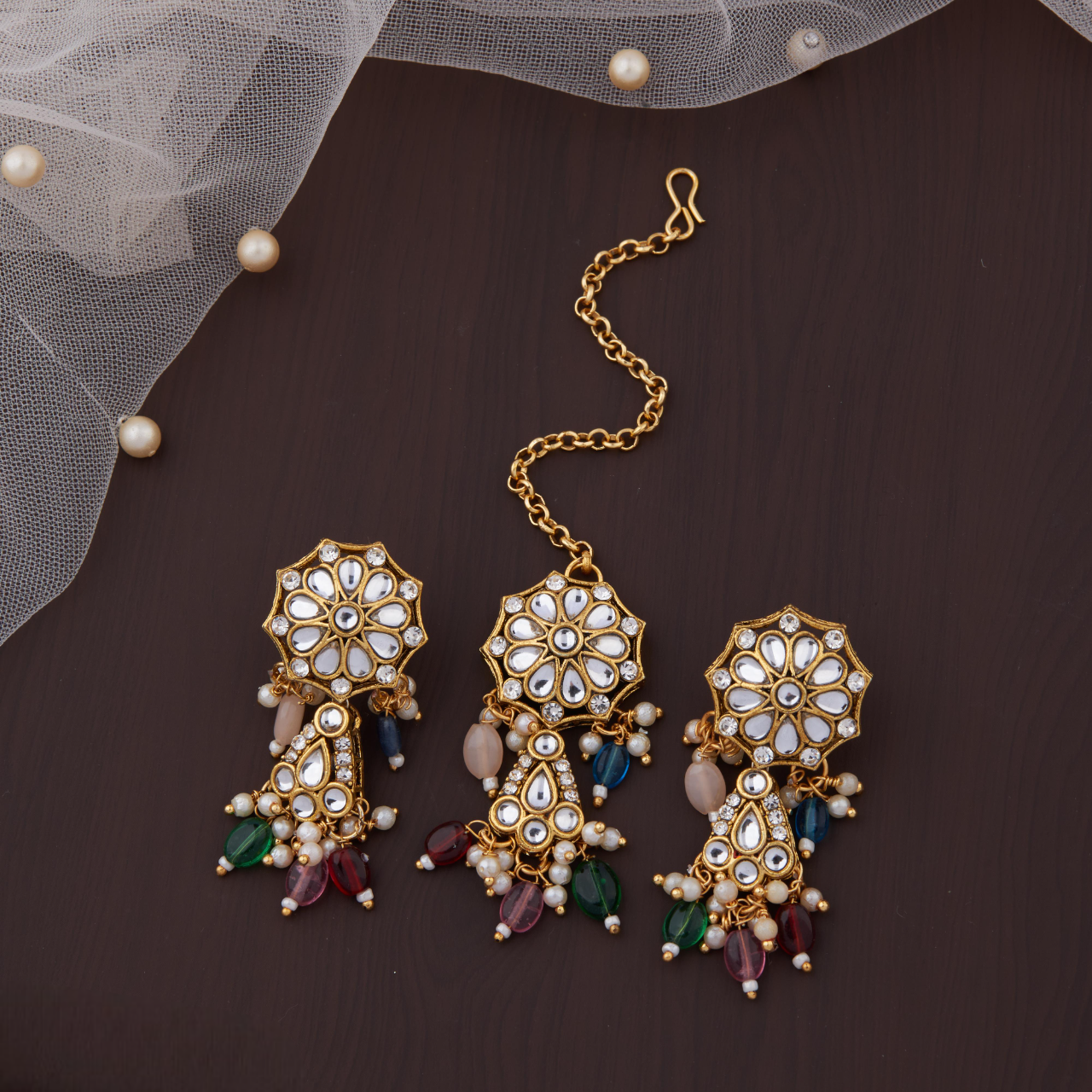 Multicolor Beaded Kundan Necklace & Earrings Set