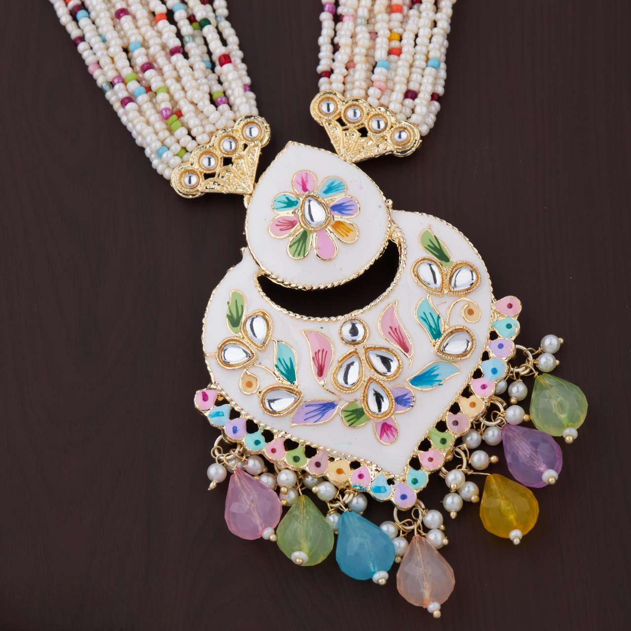 Elegance to your ethnic jewelry collection with this multicolor Meenakari beaded necklace set.