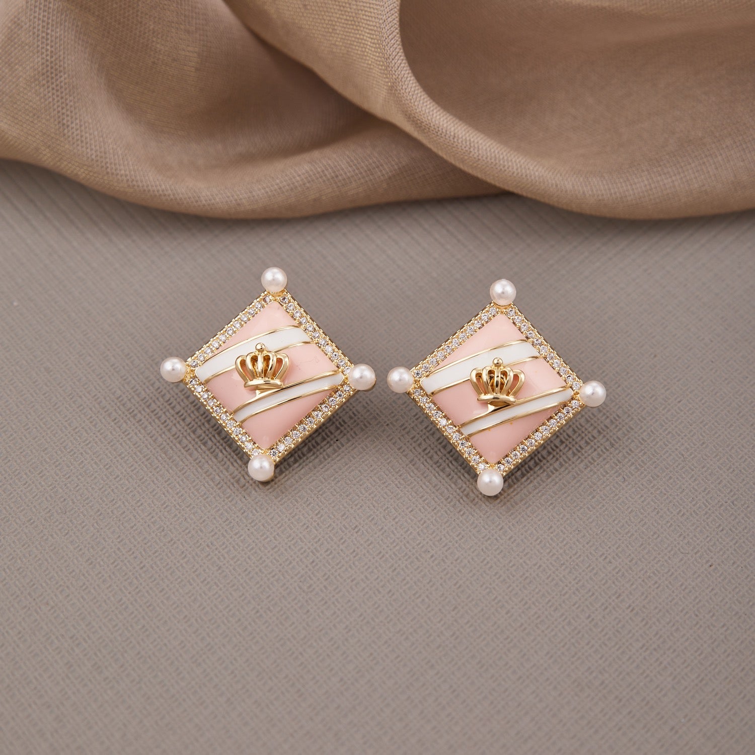 The Earrings feature a pair of earrings elegantly . These earrings showcase intricate craftsmanship, possibly inspired by origami or paper-art designs, lending them a unique and artistic charm. The delicate details and creative construction highlight their appeal as both a fashion accessory and a statement piece of wearable art.