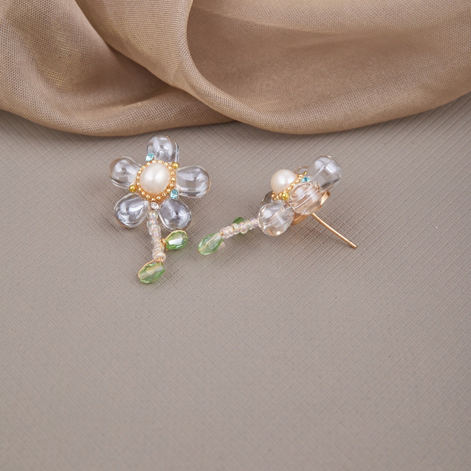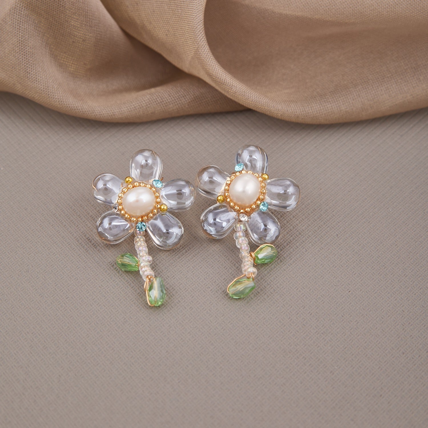 The image features a pair of elegant earrings adorned with pearls and crystals. These fashion accessories combine the classic appeal of pearls with the sparkle of crystals, making them a stunning addition to any jewelry collection. Ideal for various occasions, they embody both sophistication and style.