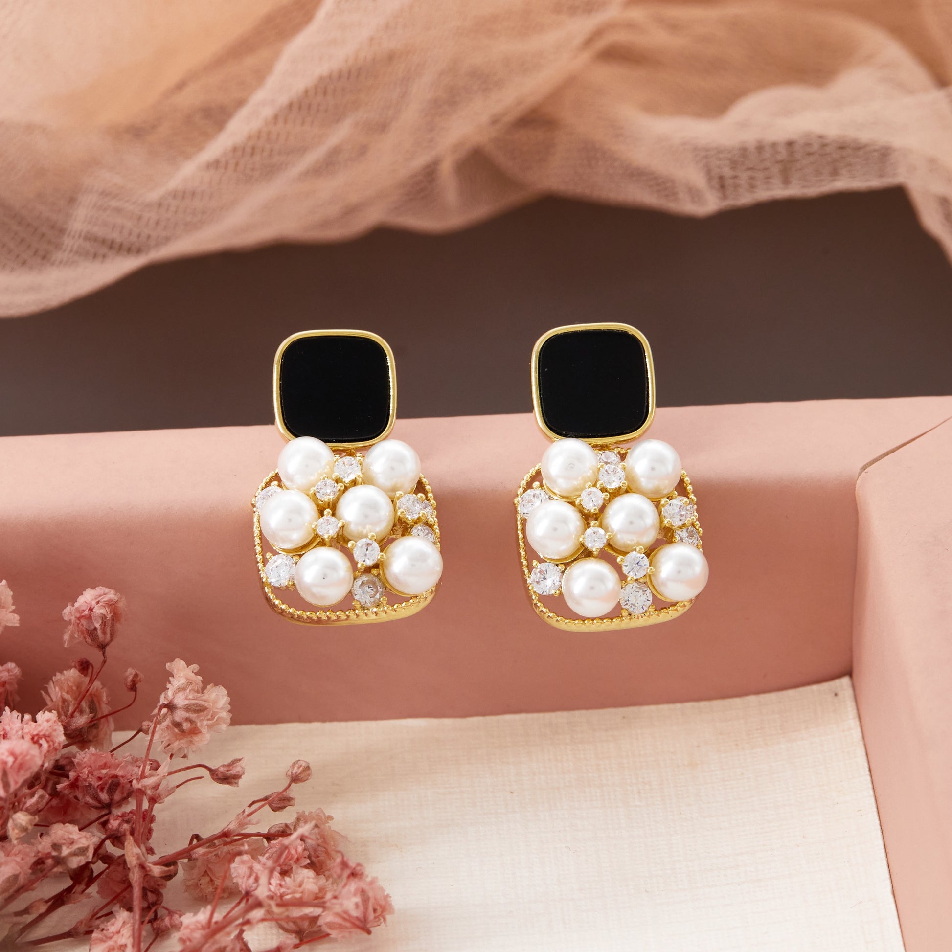 This pair of elegant earrings is adorned with lustrous pearls and sparkling diamonds, embodying sophistication and grace. Designed as a refined fashion accessory, they are ideal for special occasions such as weddings, adding a timeless charm to any ensemble.