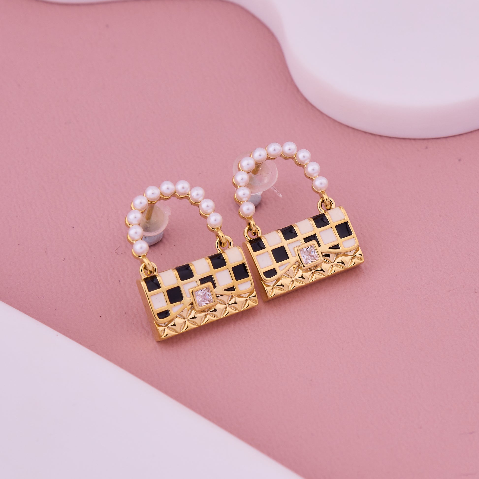 The Earrings feature a distinctive pair adorned with a white accent on the side, showcasing a bold and unique design. Categorized as a fashion accessory, they reflect a contemporary aesthetic and stylish appeal. Displayed indoors against an artistic backdrop, these earrings stand out as a creative and chic addition to any jewelry collection.