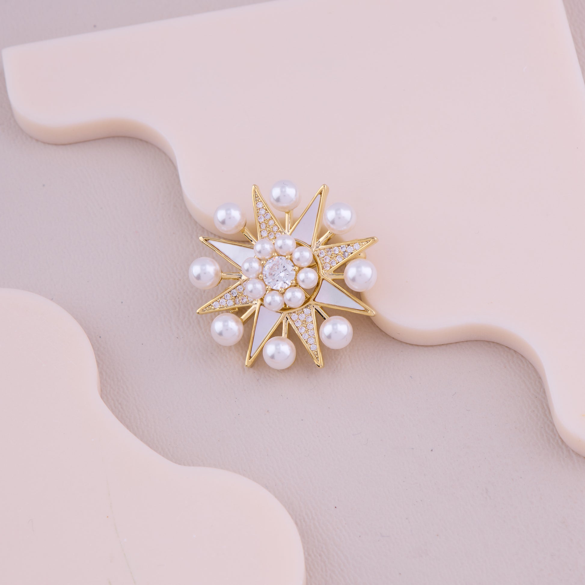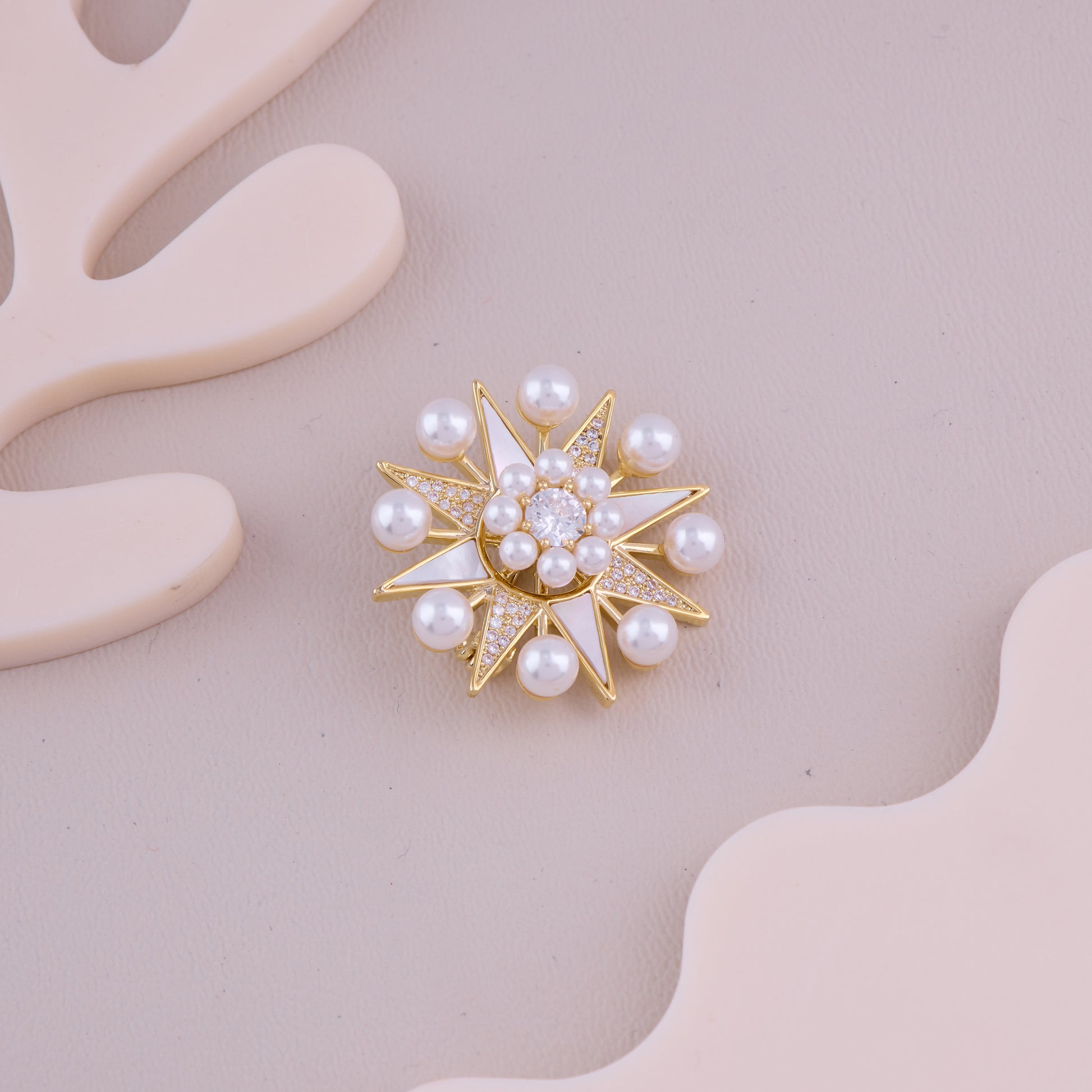 Pearl Starburst Crystal Brooch