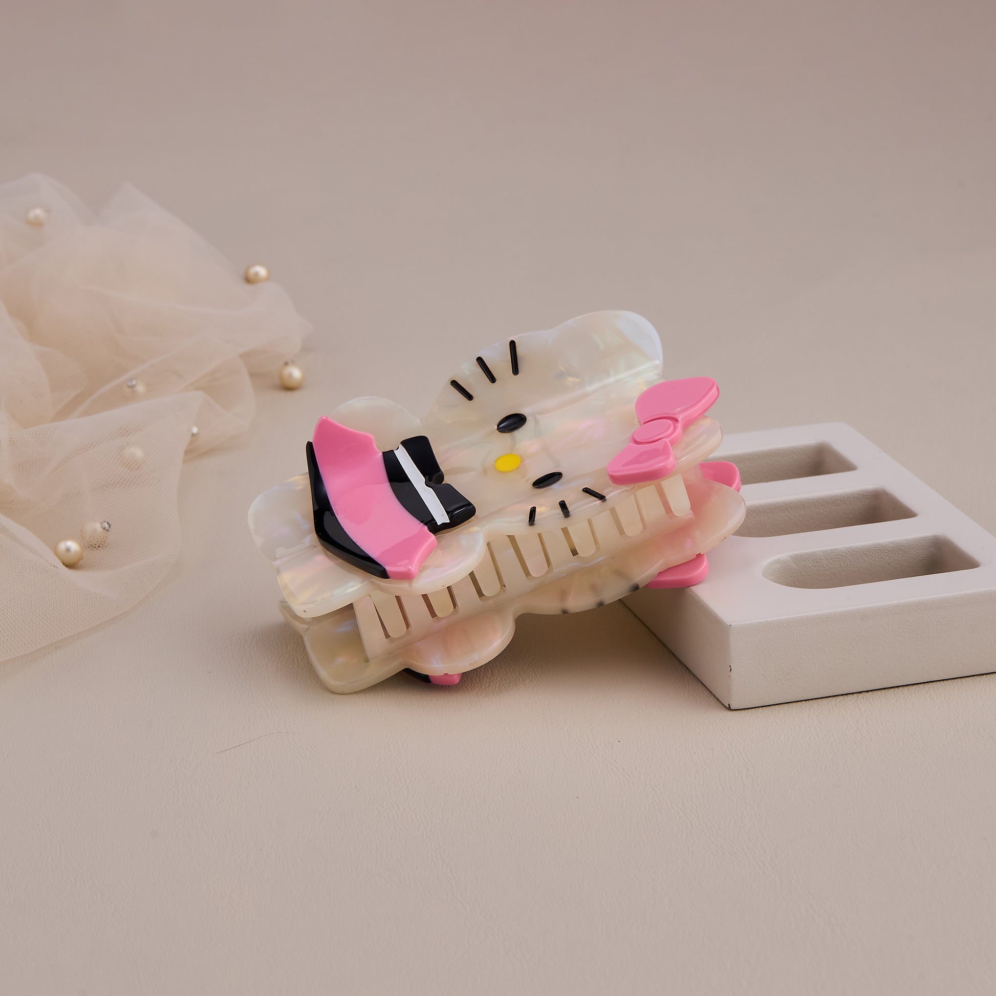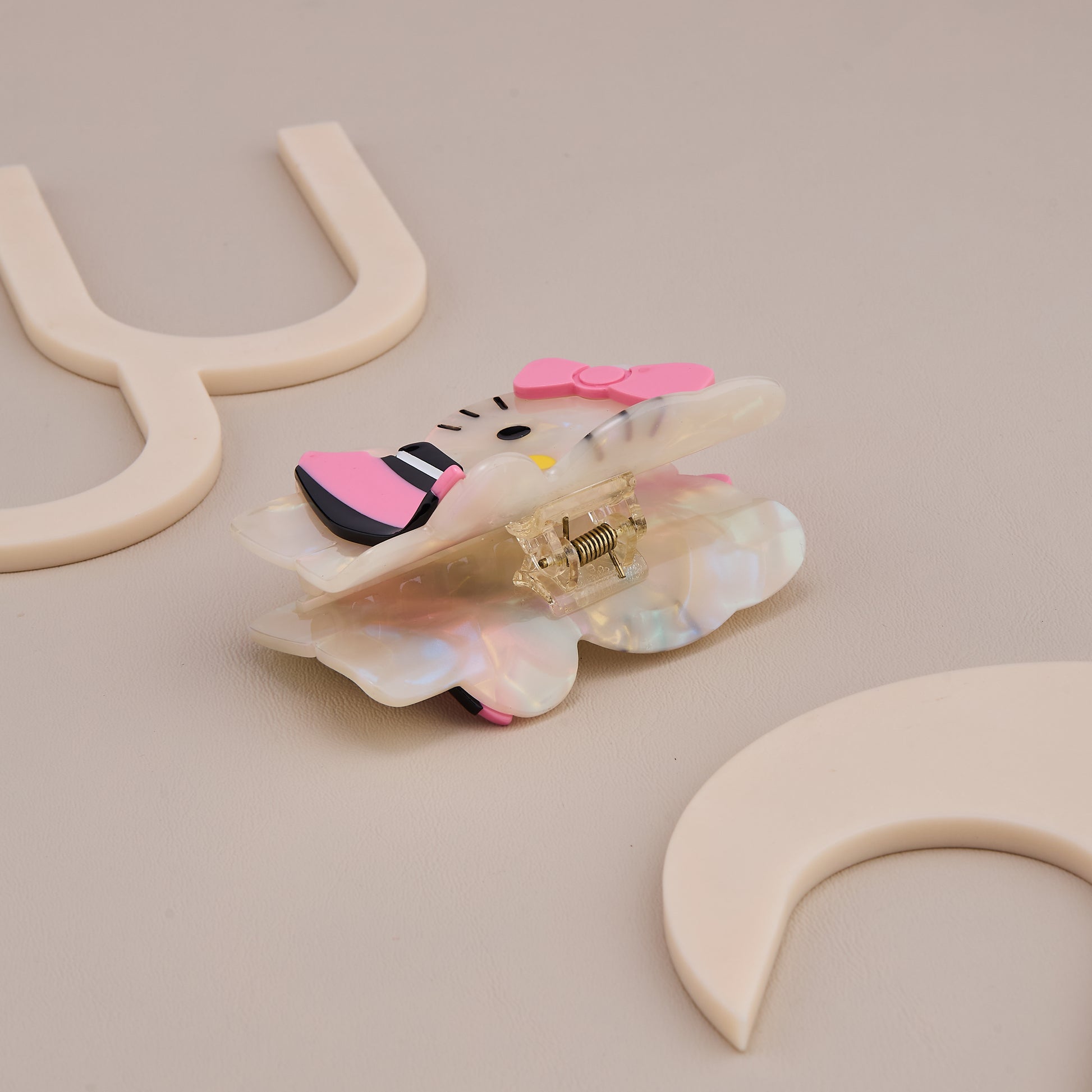 Adorable Hello Kitty hair claw clip featuring a cute pink dress and matching bow design. Made from high-quality acrylic with a glossy pearl finish, it provides a secure and gentle hold for all hair types. Perfect for adding a touch of sweetness to any hairstyle — great for kids and girls who love cute accessories.