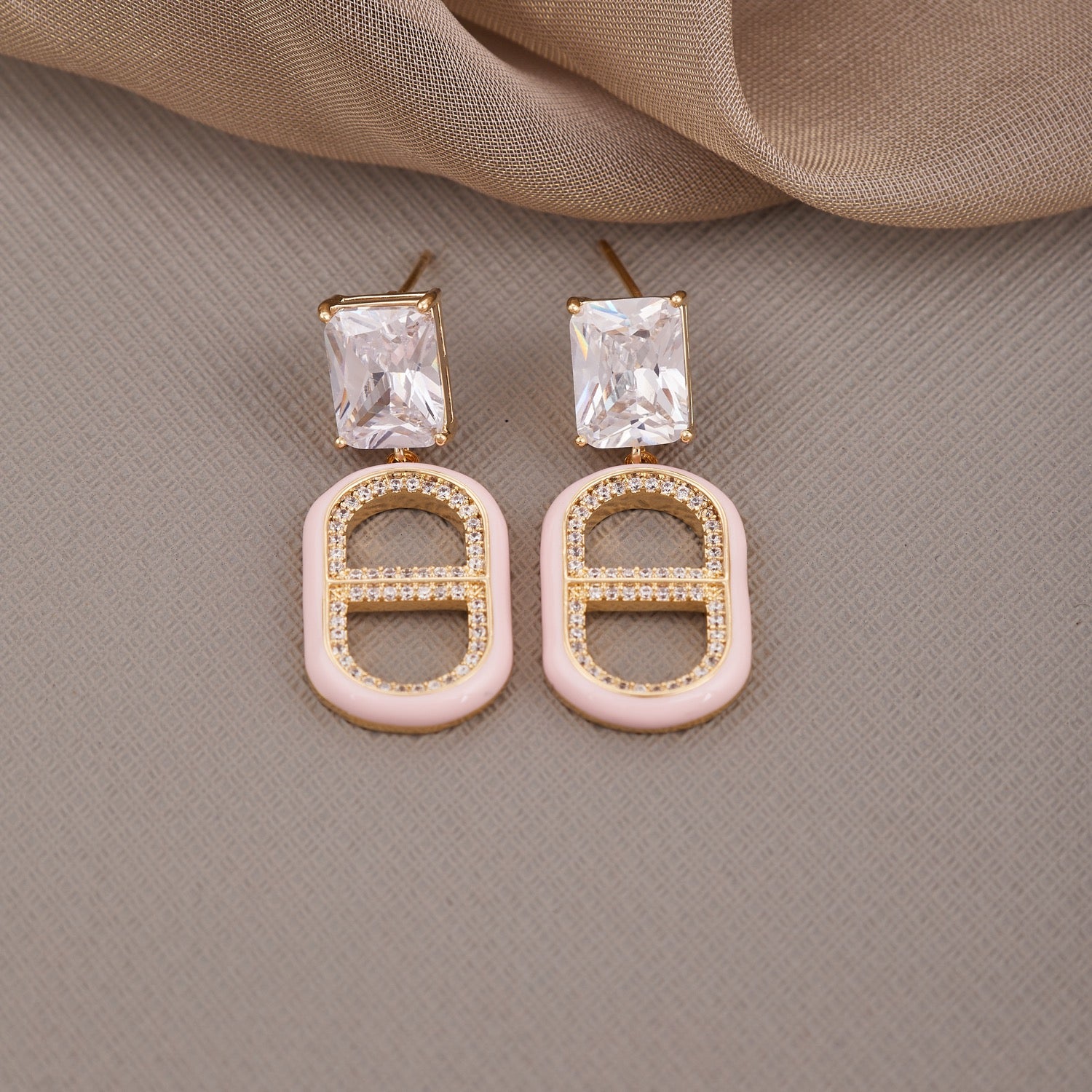 Pink Elegant White Diamond Earrings
