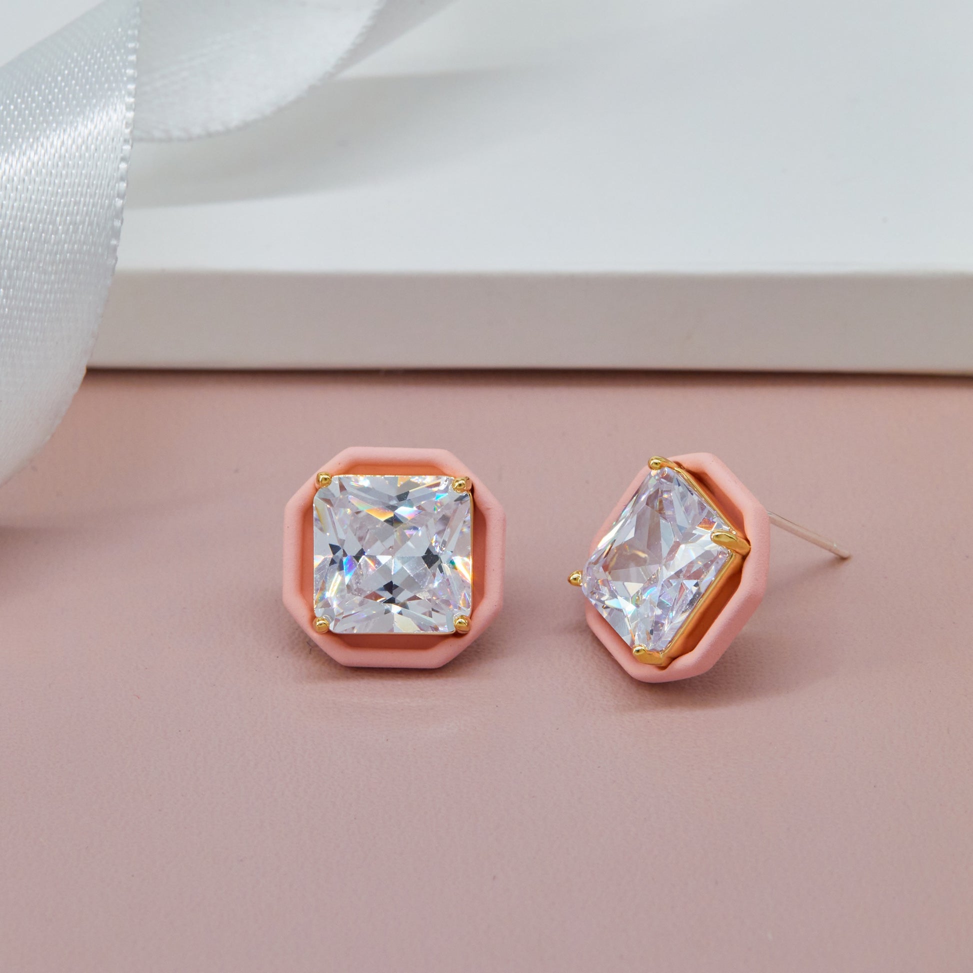 Pink Framed Earrings Enamel & Gemstone Elegance